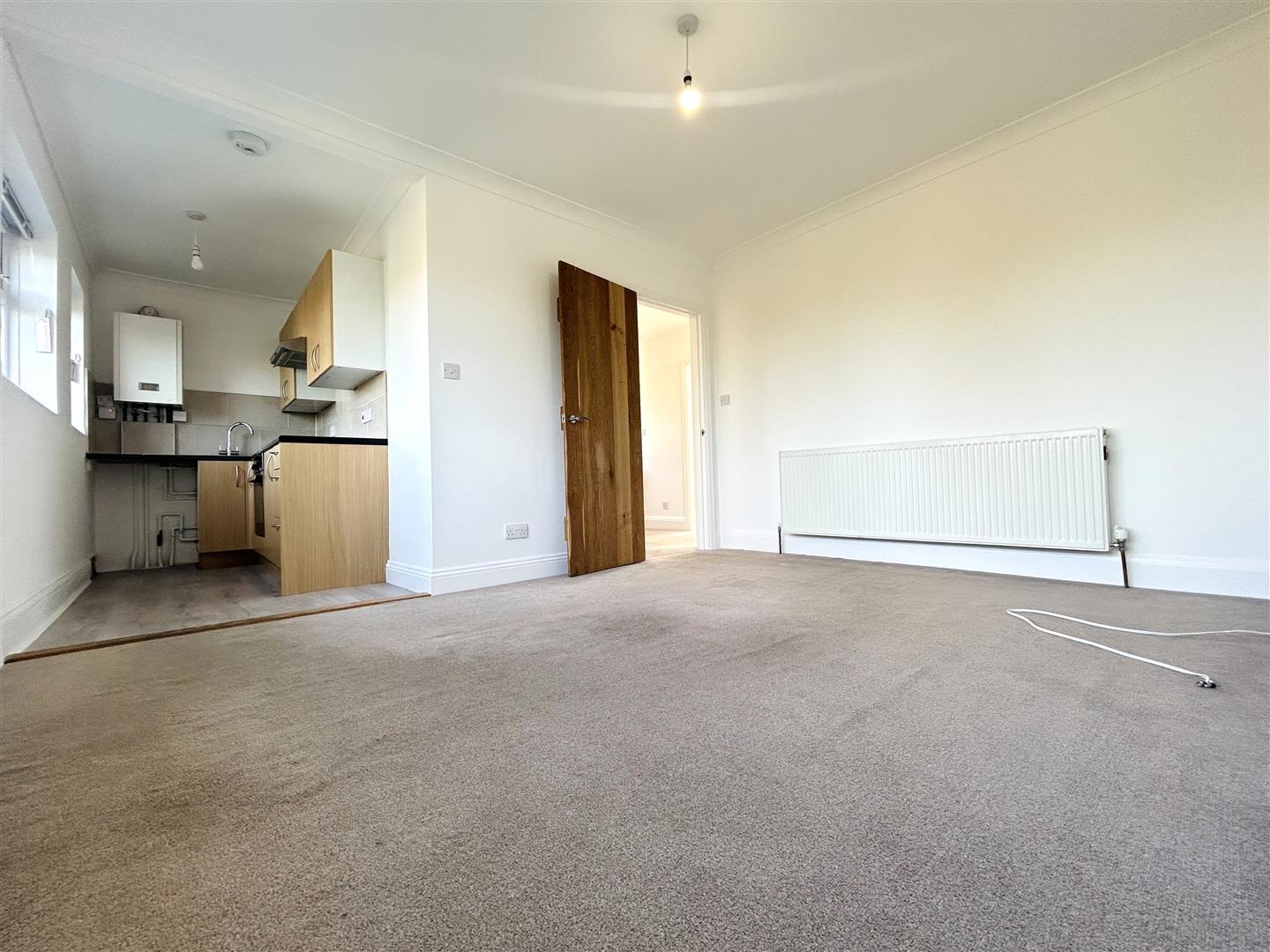 Radiator, double glazed window to side, door to;