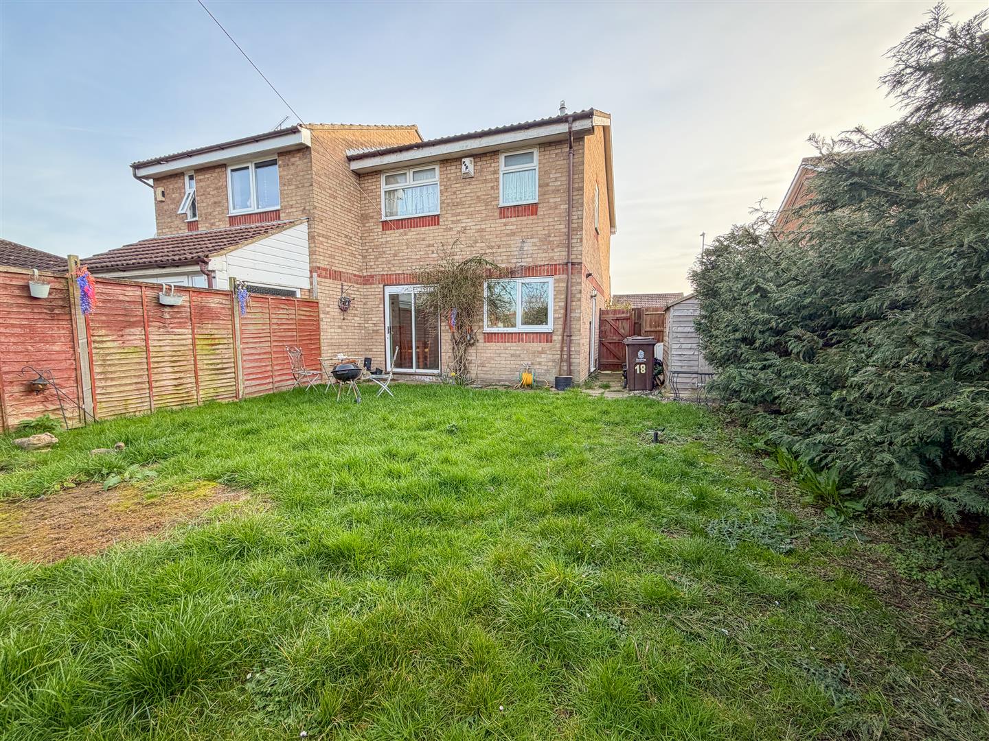 Approx. 40' Rear garden is mainly laid to lawn. Array of shrubs. Enclosed by panel fencing. Timber storage shed.