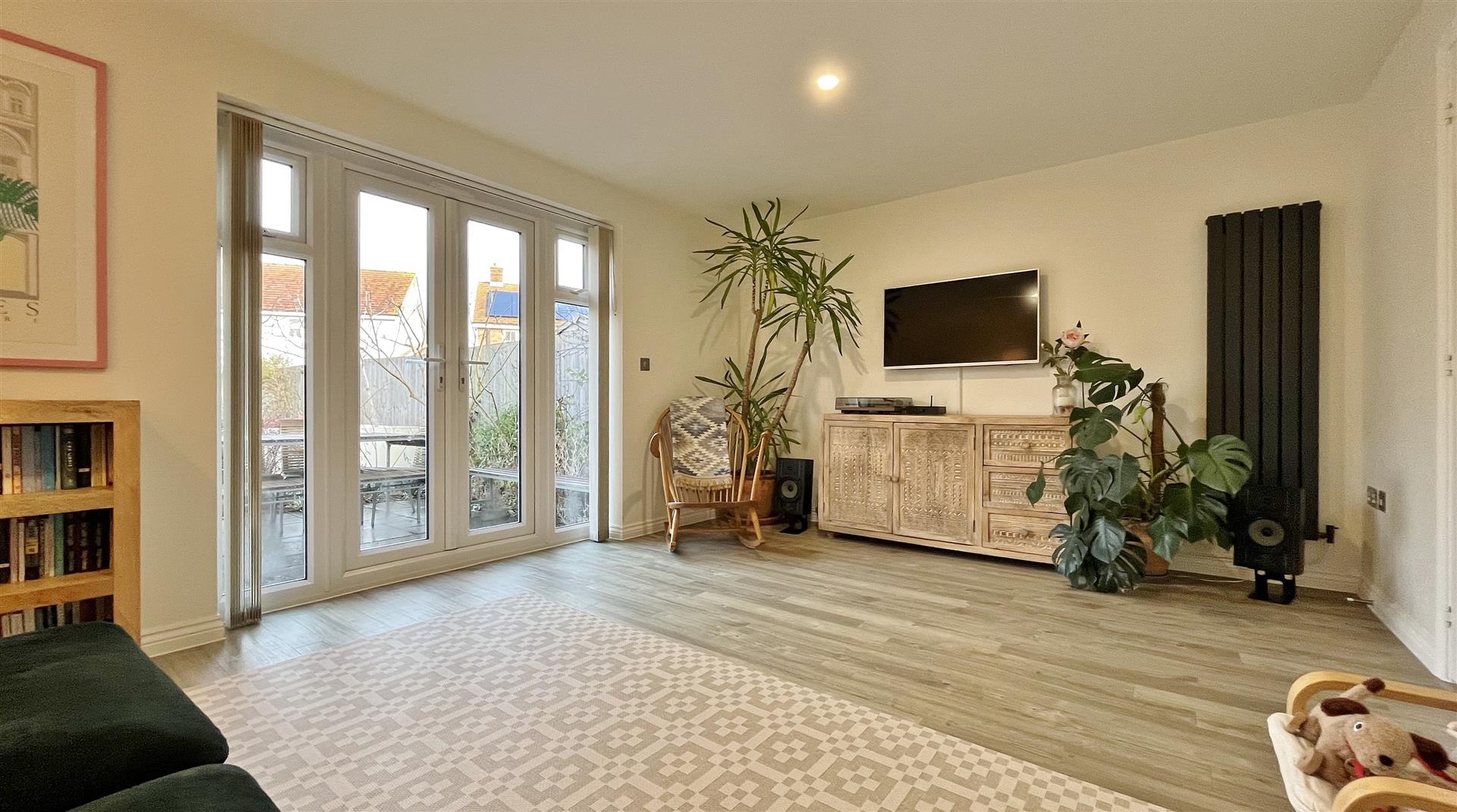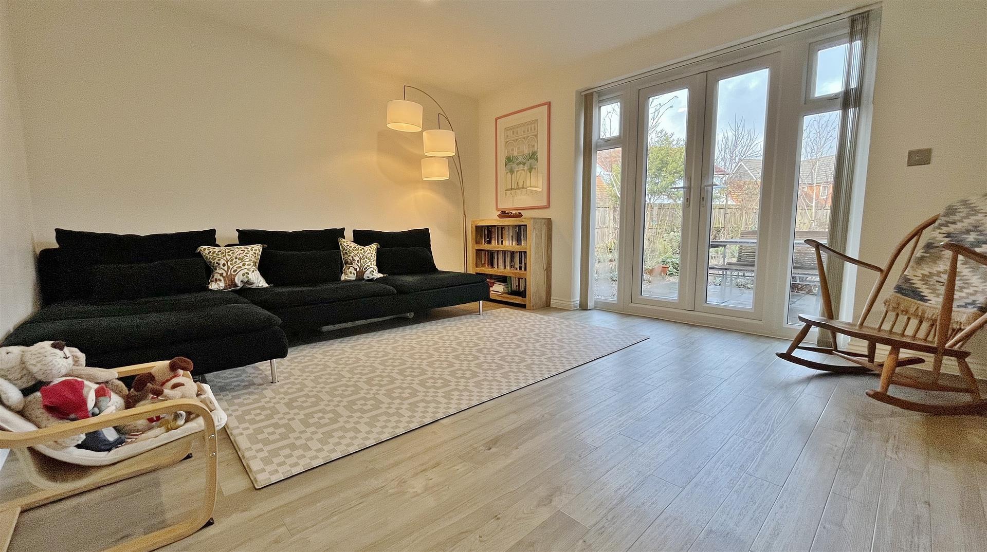 Radiator. Spotlights. Amtico flooring. Sealed unit double glazed windows to rear. Sealed unit double glazed patio doors to garden.