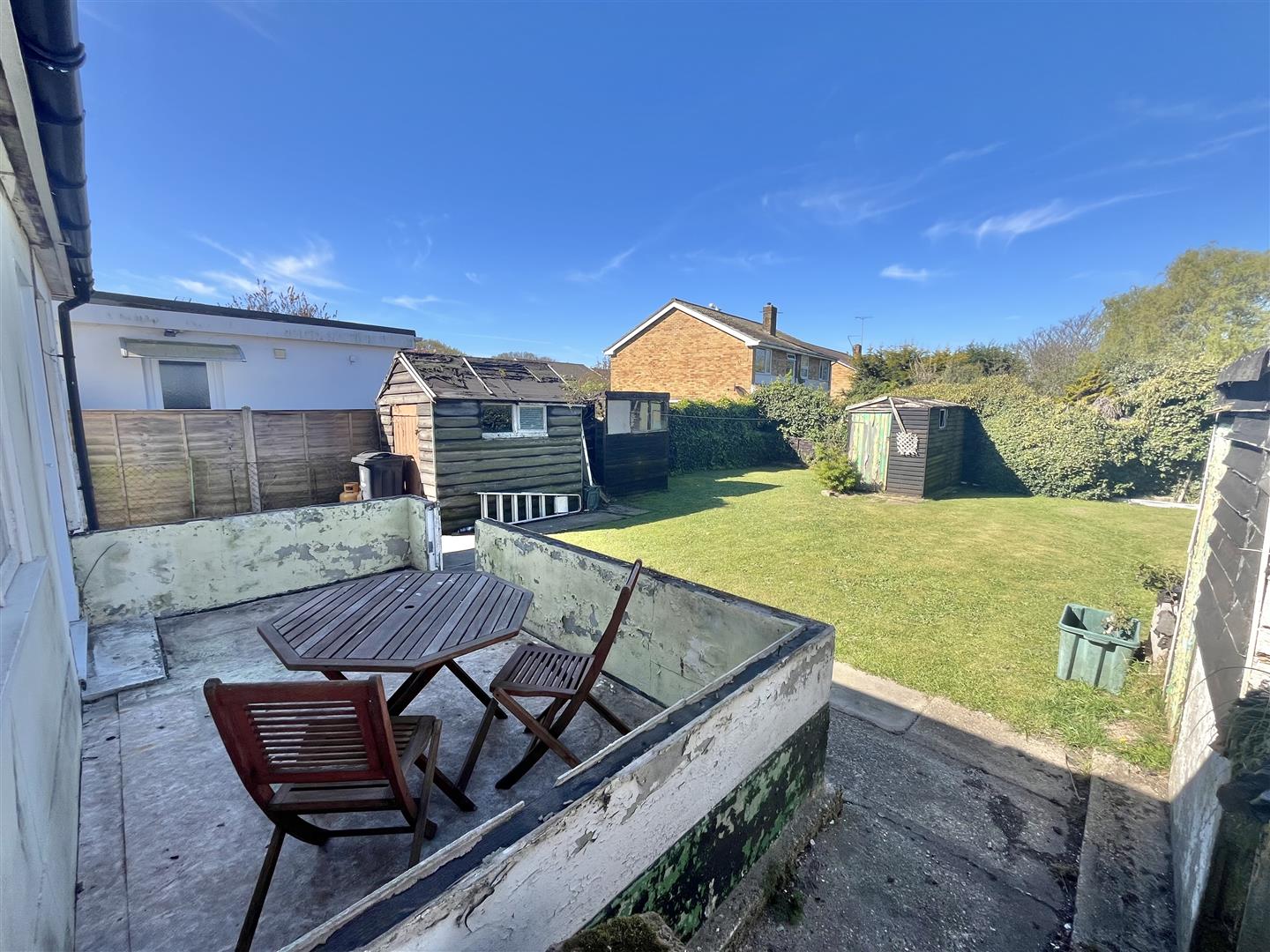 Hard standing area enclosed by part brick wall (please note this was previously the base for a conservatory). Paved patio area leading to side access both sides. with the remainder being laid to lawn. Four wooden storage sheds. Enclosed by panelled fencing.