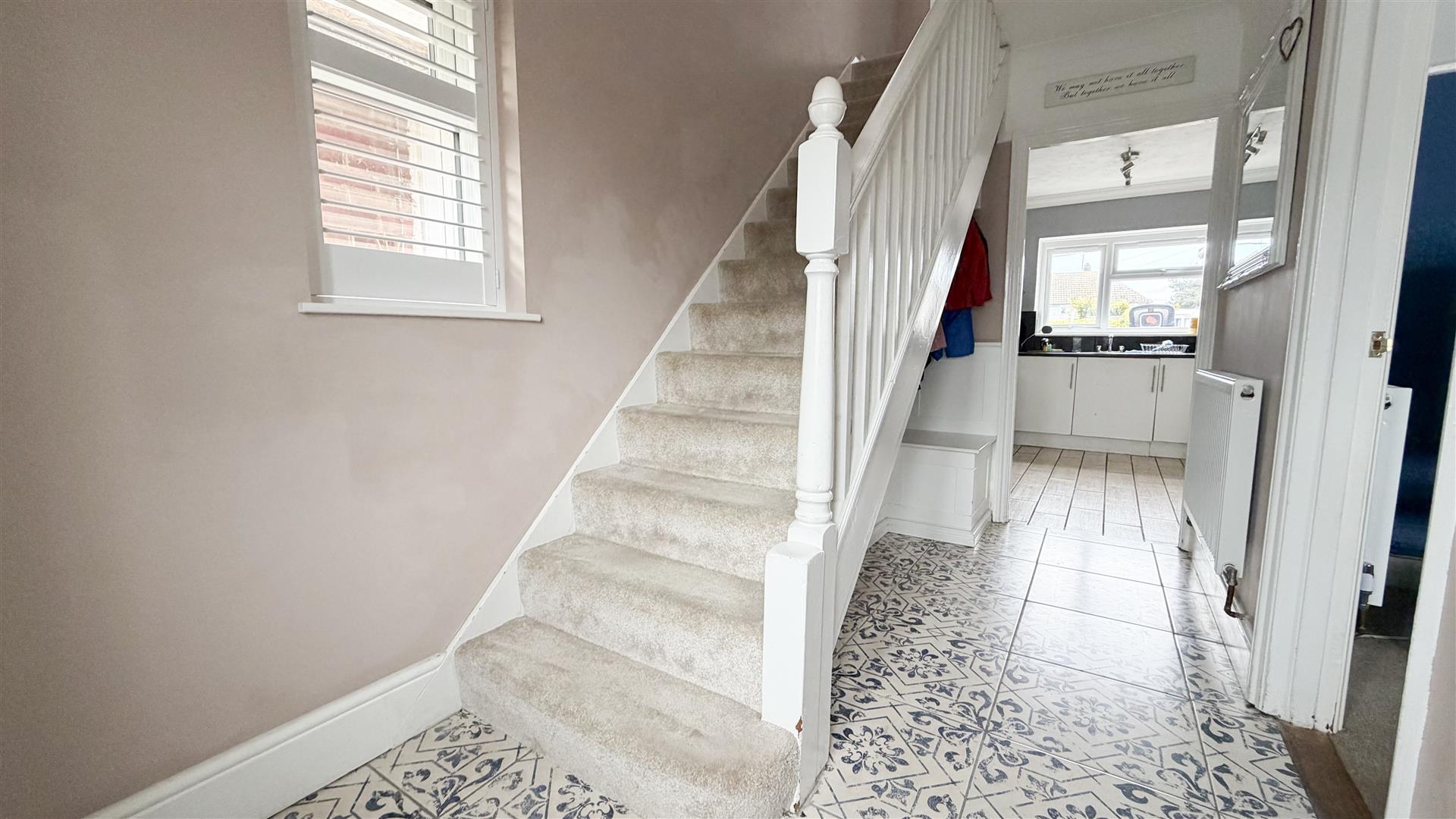 Stair flight to first floor. Double glazed window to side. Radiator. Doors to: