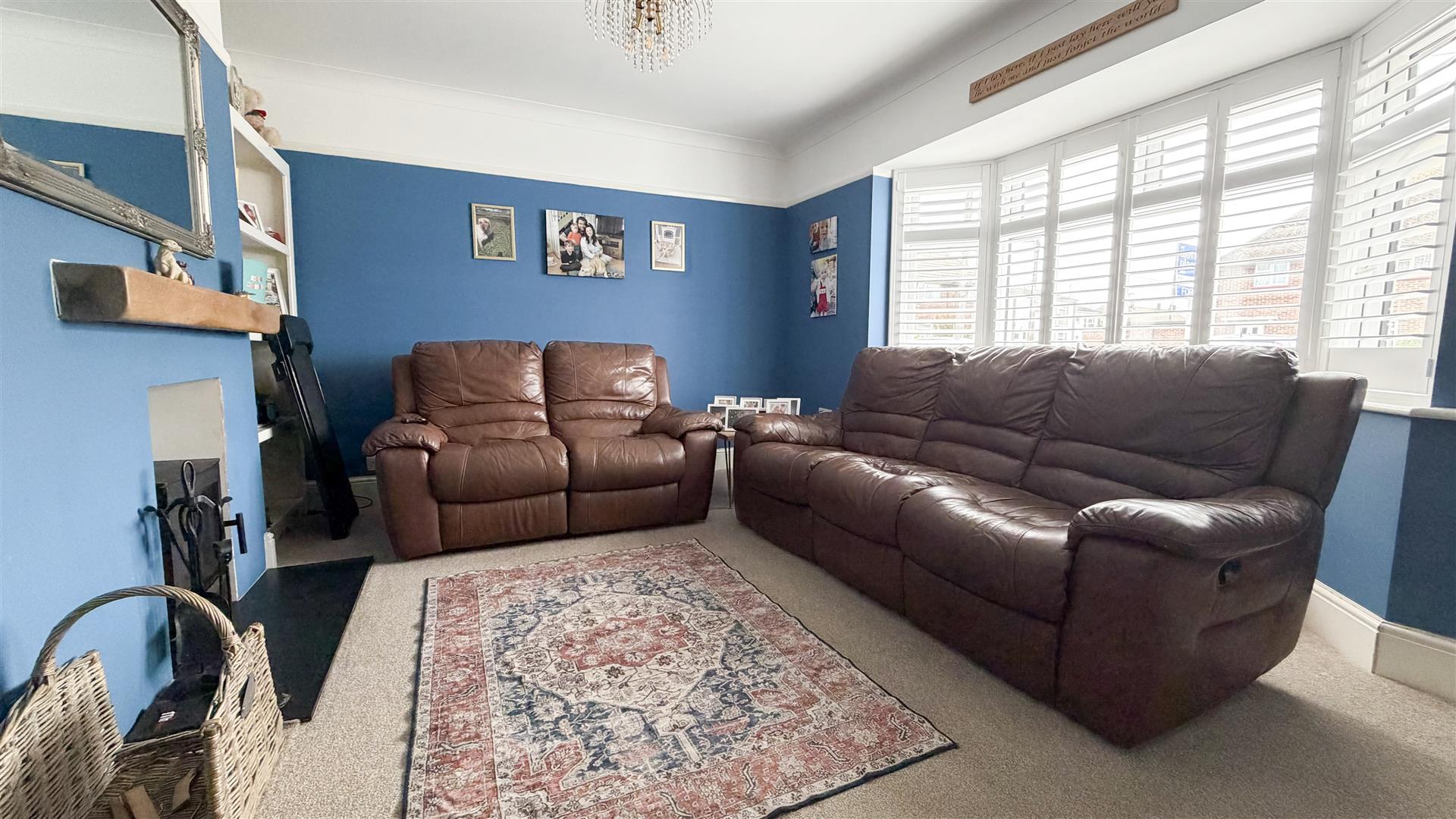 Radiator. Fire surround with inset log burner. Double glazed bay window to front.