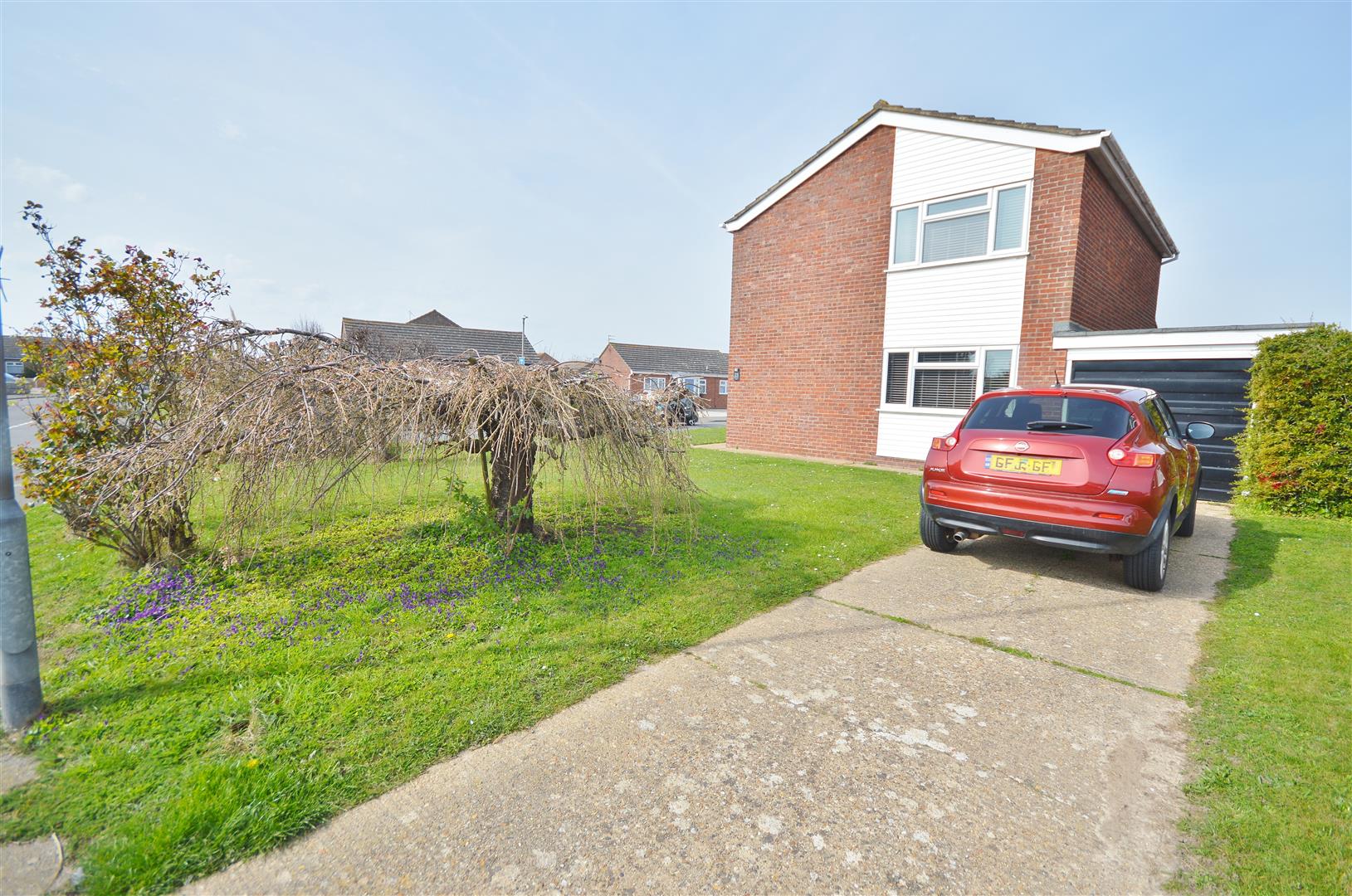 Positioned on a corner plot which provides hardstanding areas providing off street parking for multiple vehicles. Access to garage with up and over door. Side pedestrian access leading to outside rear garden.