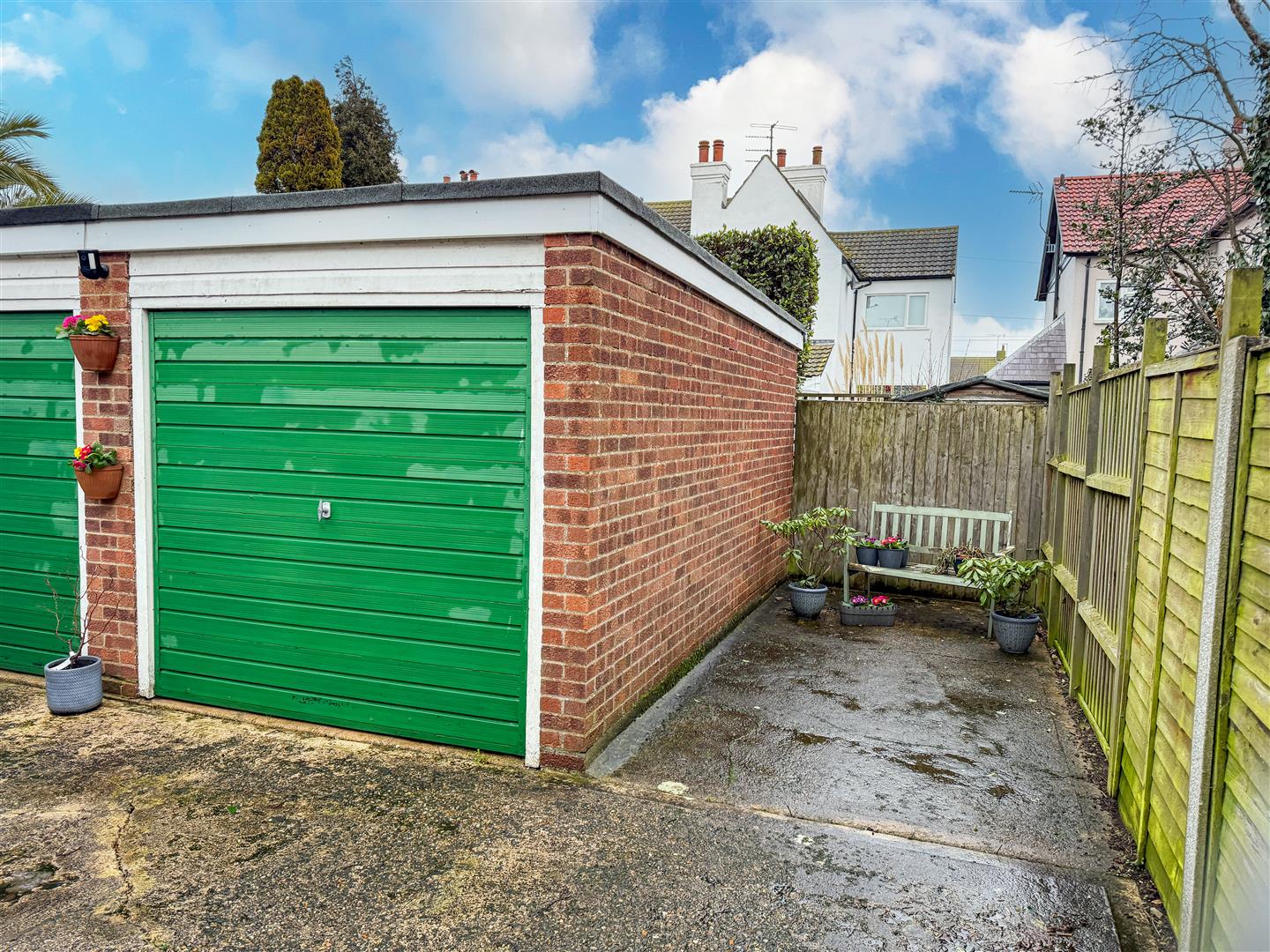 To the rear of the property is shared hardstanding area currently being used as communal parking. The garage included with the first floor flat is the garage on the right which has an up and over door. To the right of this there is a hardstanding area allocated to the flat. We understand from the seller that the front small lawned garden is also used by thee first floor flat.