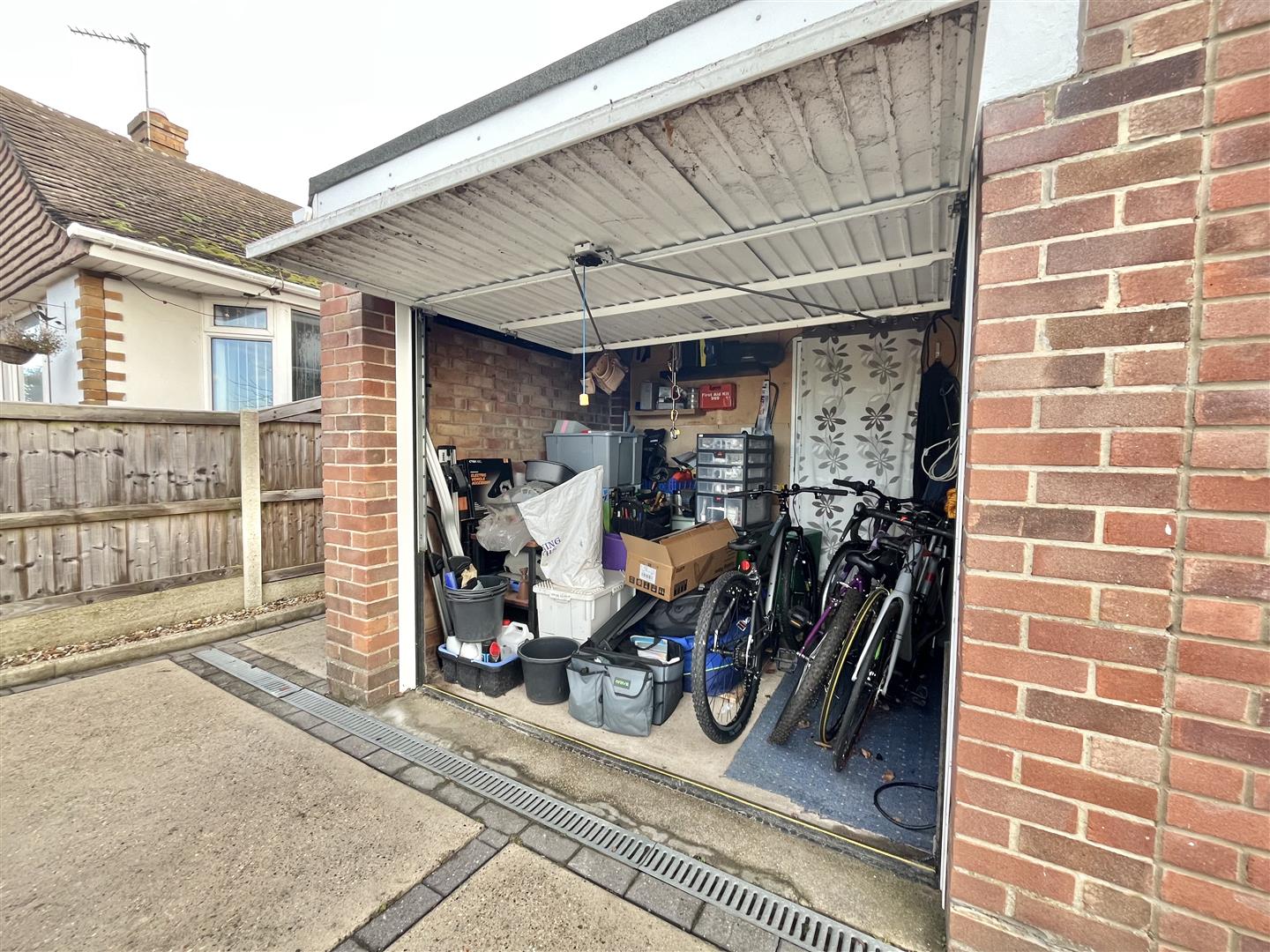 Up and over door. Fitted electric 7KW EV charger.