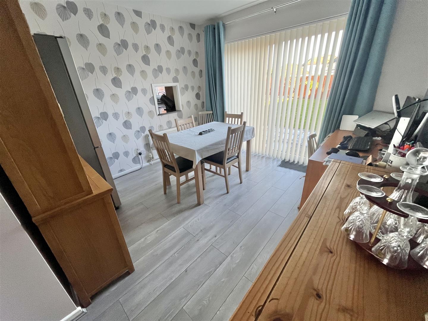 Radiator. UPVC Double glazed sliding door to garden.