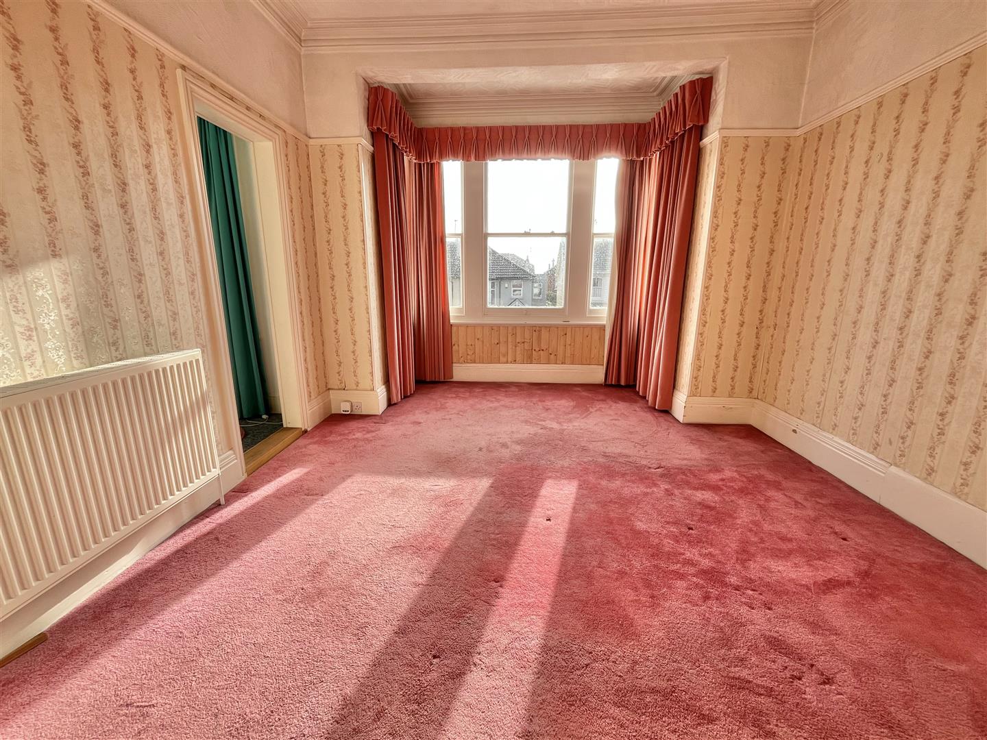 Decorative fireplace. Two radiators. Single glazed window to front.