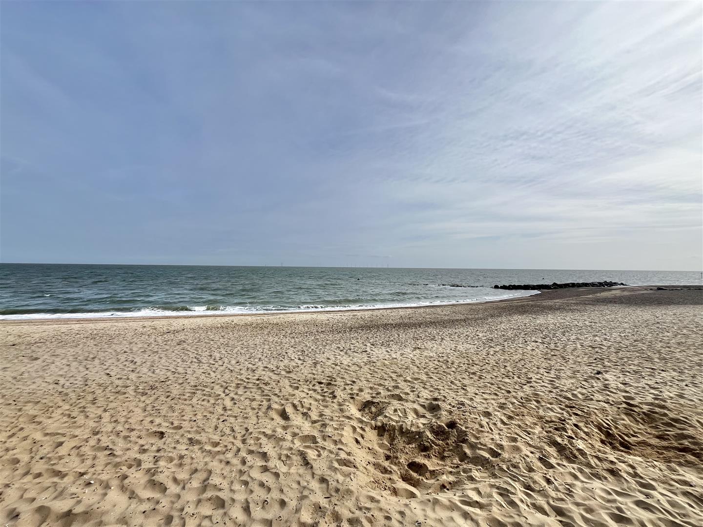 Views across the promenade and sea wall to beach.
