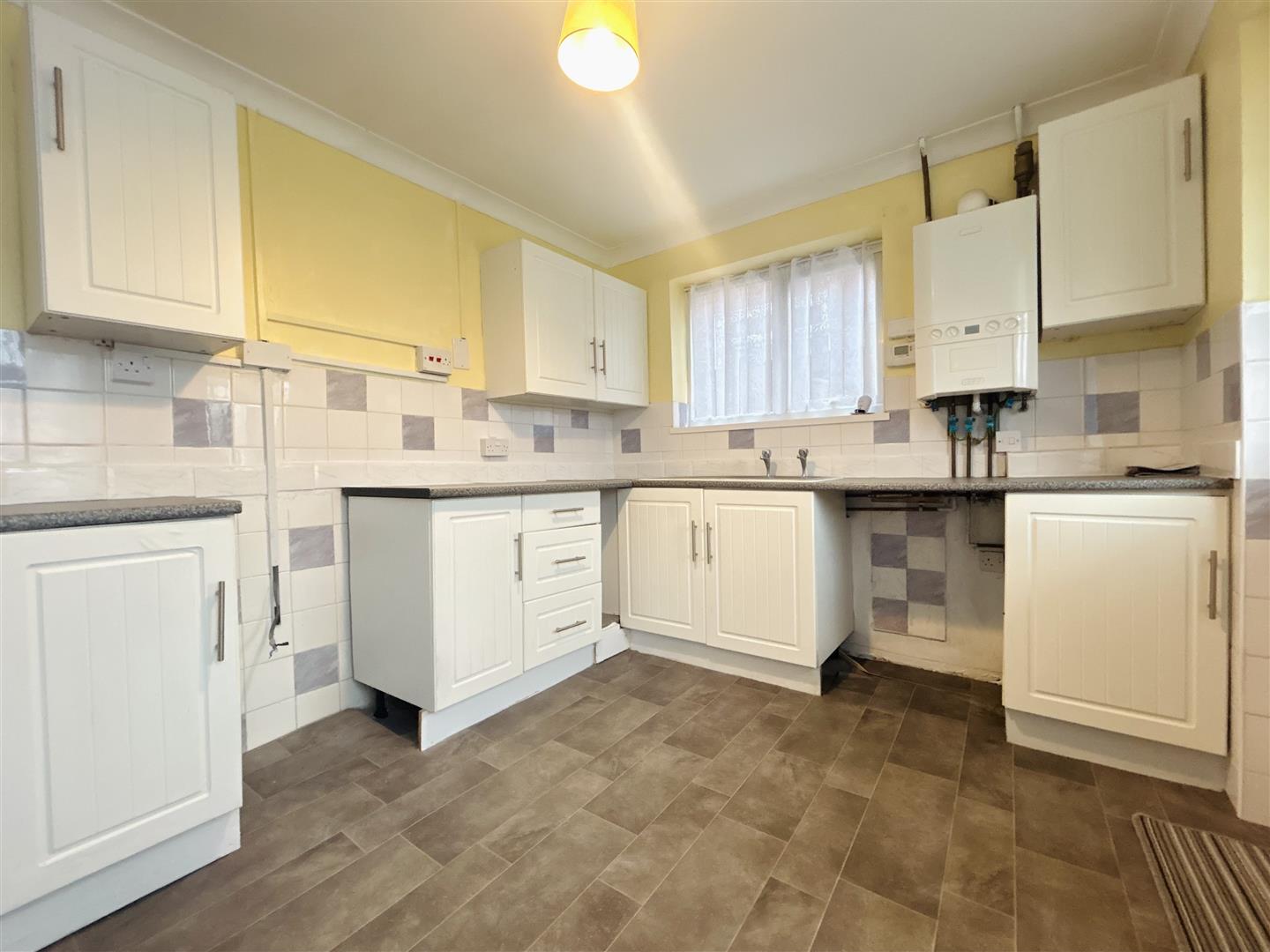 cupboard's at both eye and floor level, space and plumbing facilities for washing machine, space for freestanding cooker, boiler. Part tiled walls & part panelled walls. Double glazed window to rear garden, door to rear garden.