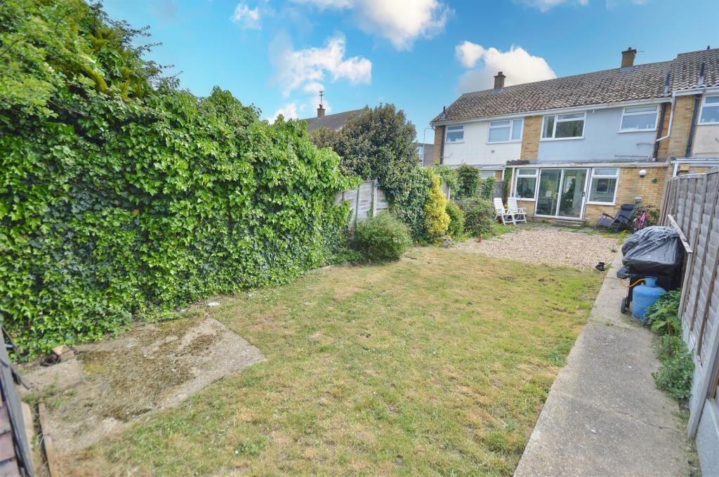 Stone shingled area with remainder being laid to lawn. Enclosed by panelled fencing. One wooden storage shed. Rear access leading to Garage en bloc,