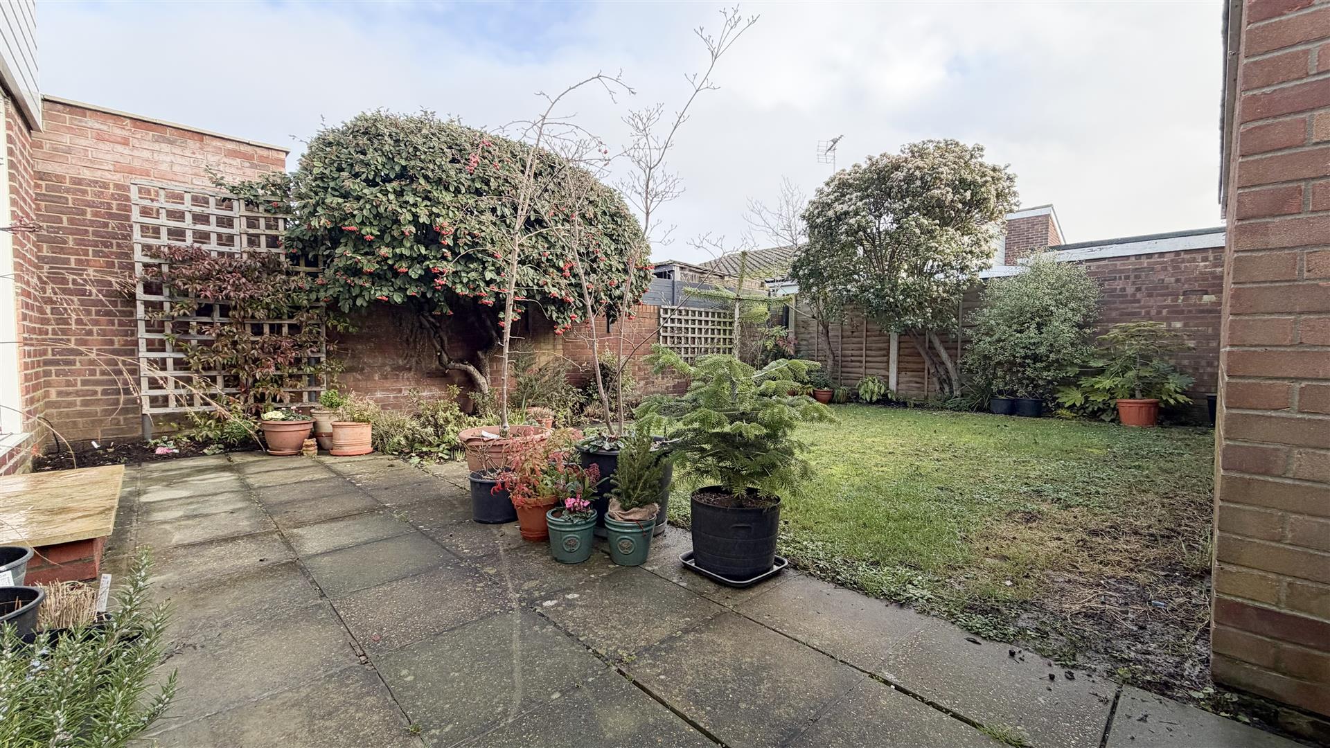 Partly paved. Majority laid to lawn. Borders stocked with shrubs and bushes. Enclosed by panel fencing. Personal door to extended garage. Gate giving side access to: