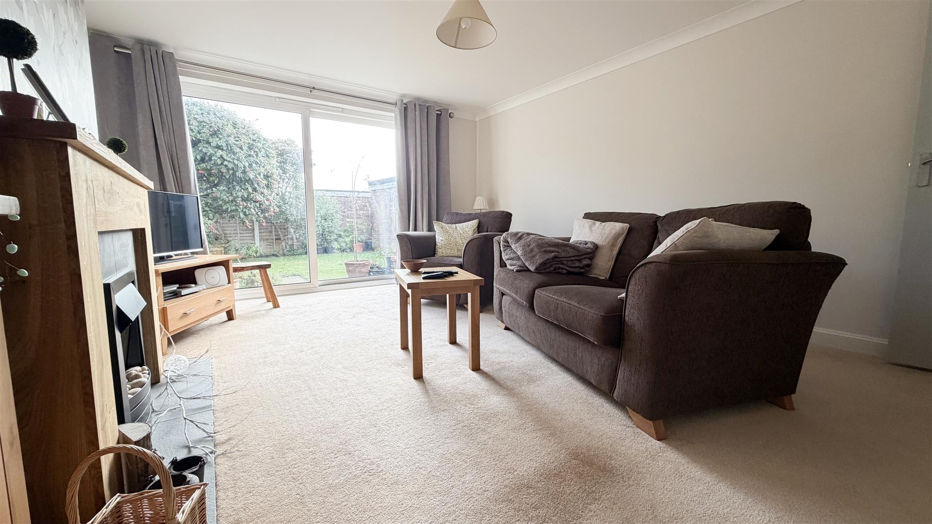 Radiator. Inset electric fire with solid oak surround. Double glazed sliding patio doors to rear.