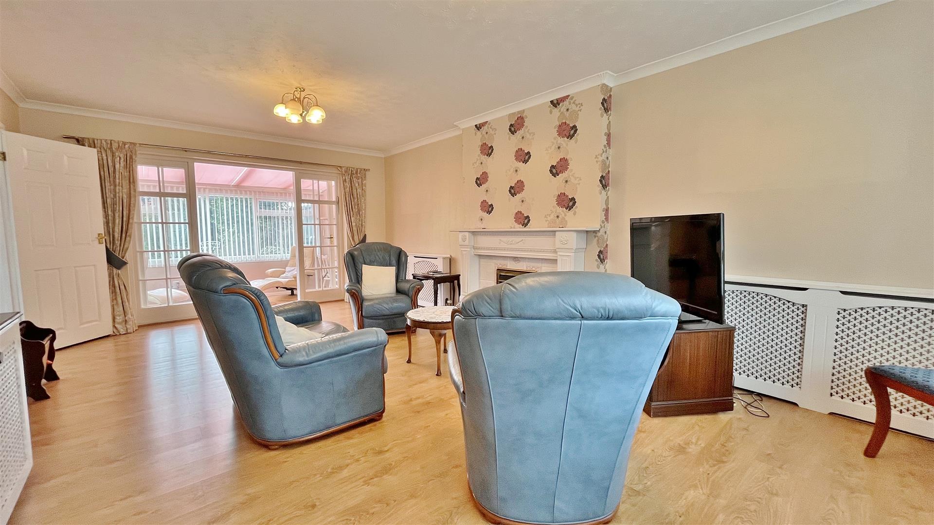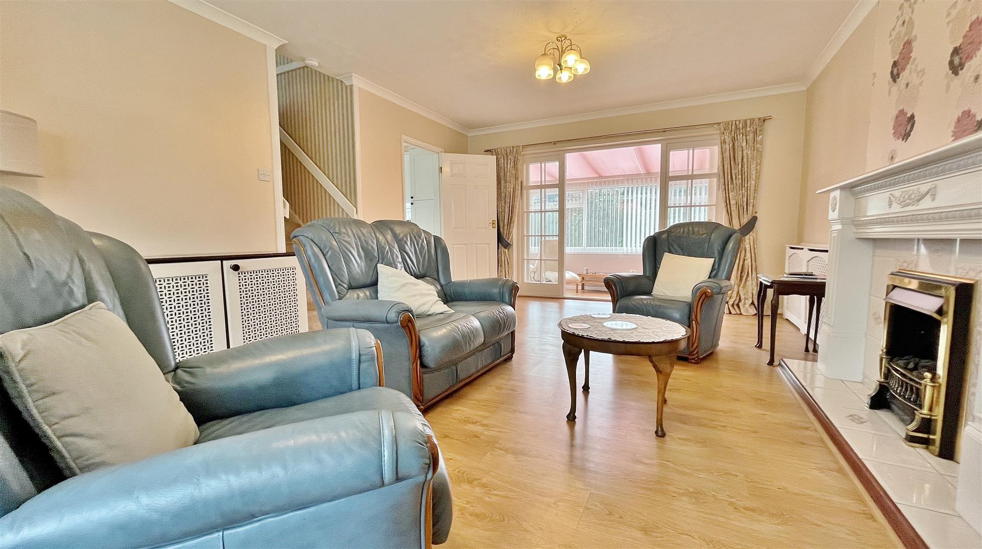 Wood effect laminate flooring. Sealed unit double glazed windows to front and side. Sealed unit double glazed door to garden.