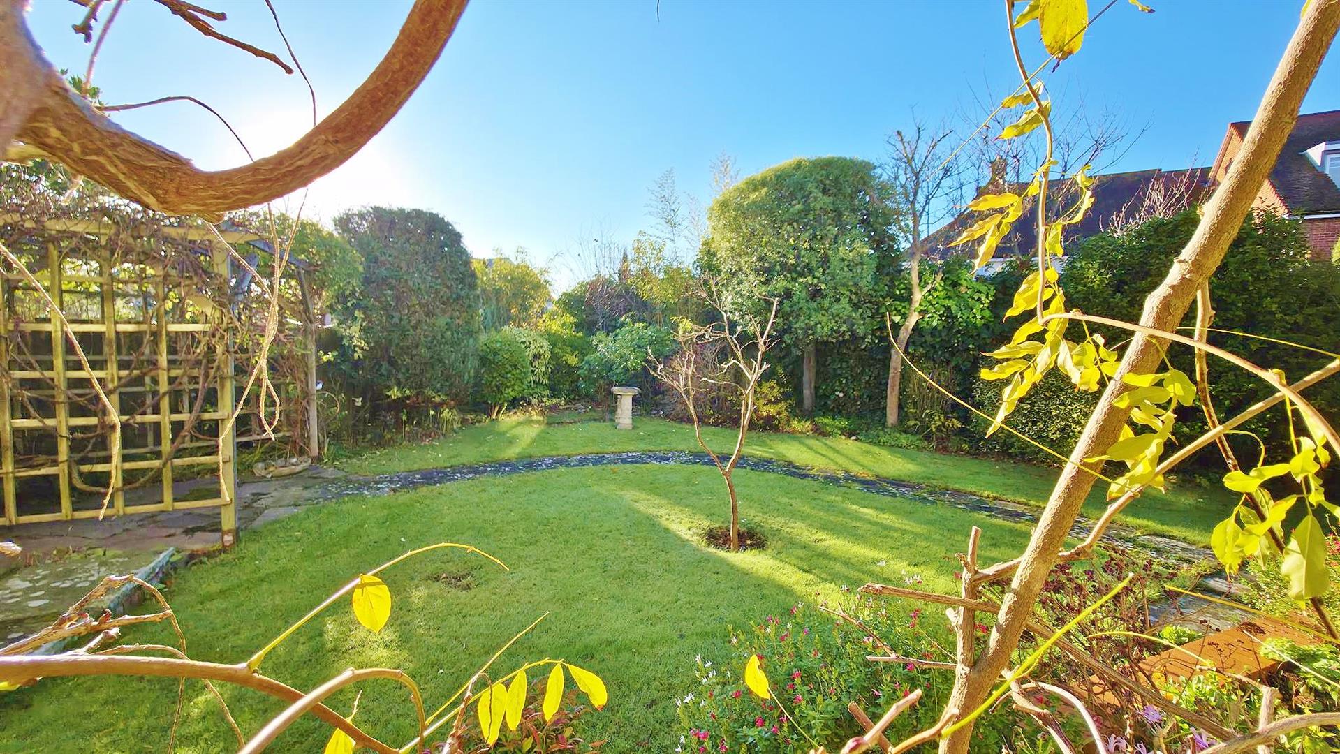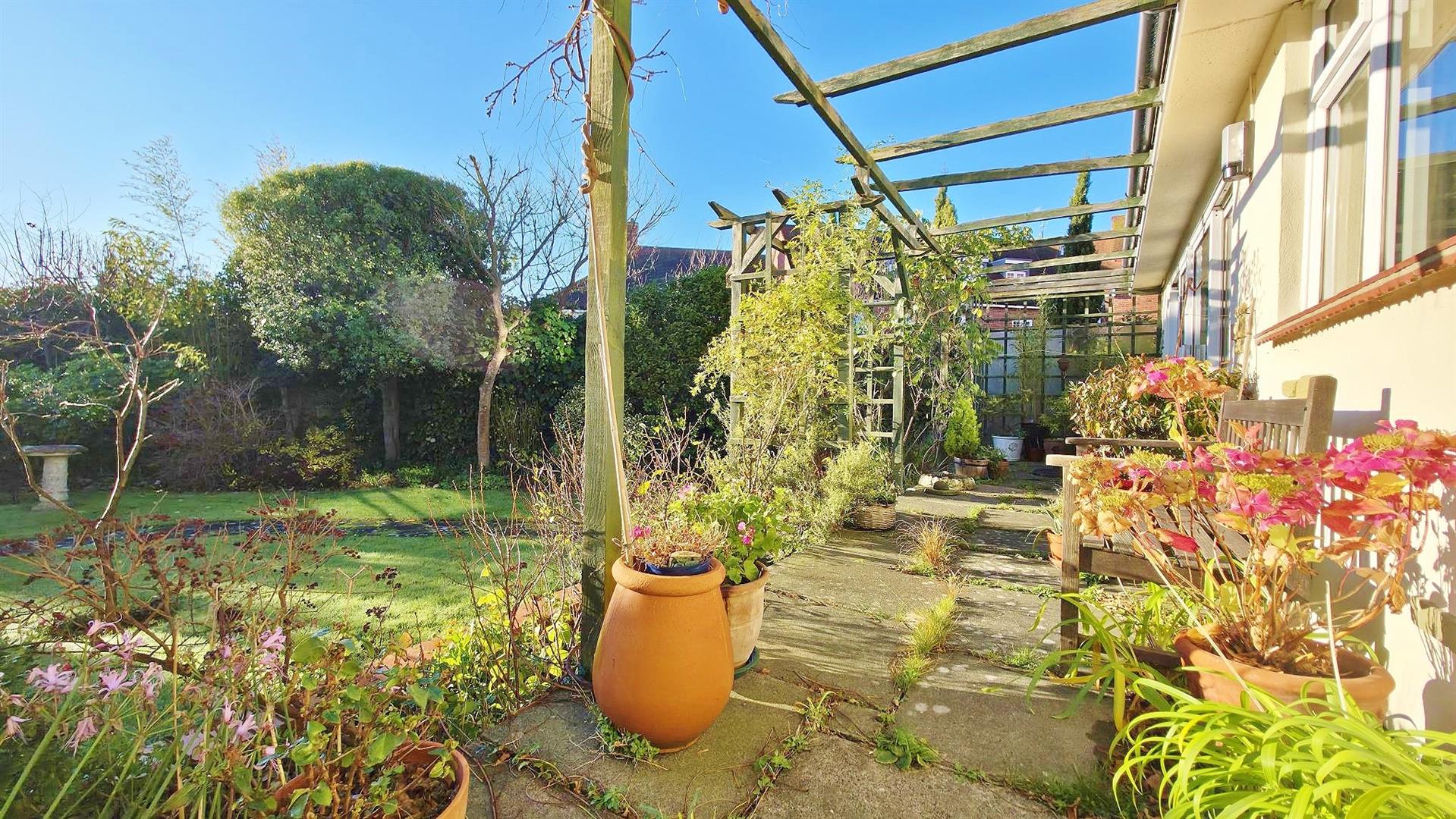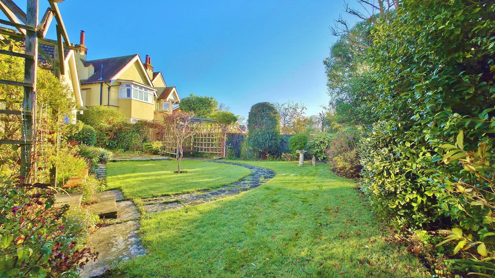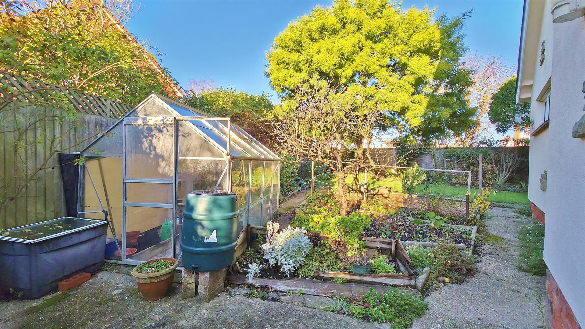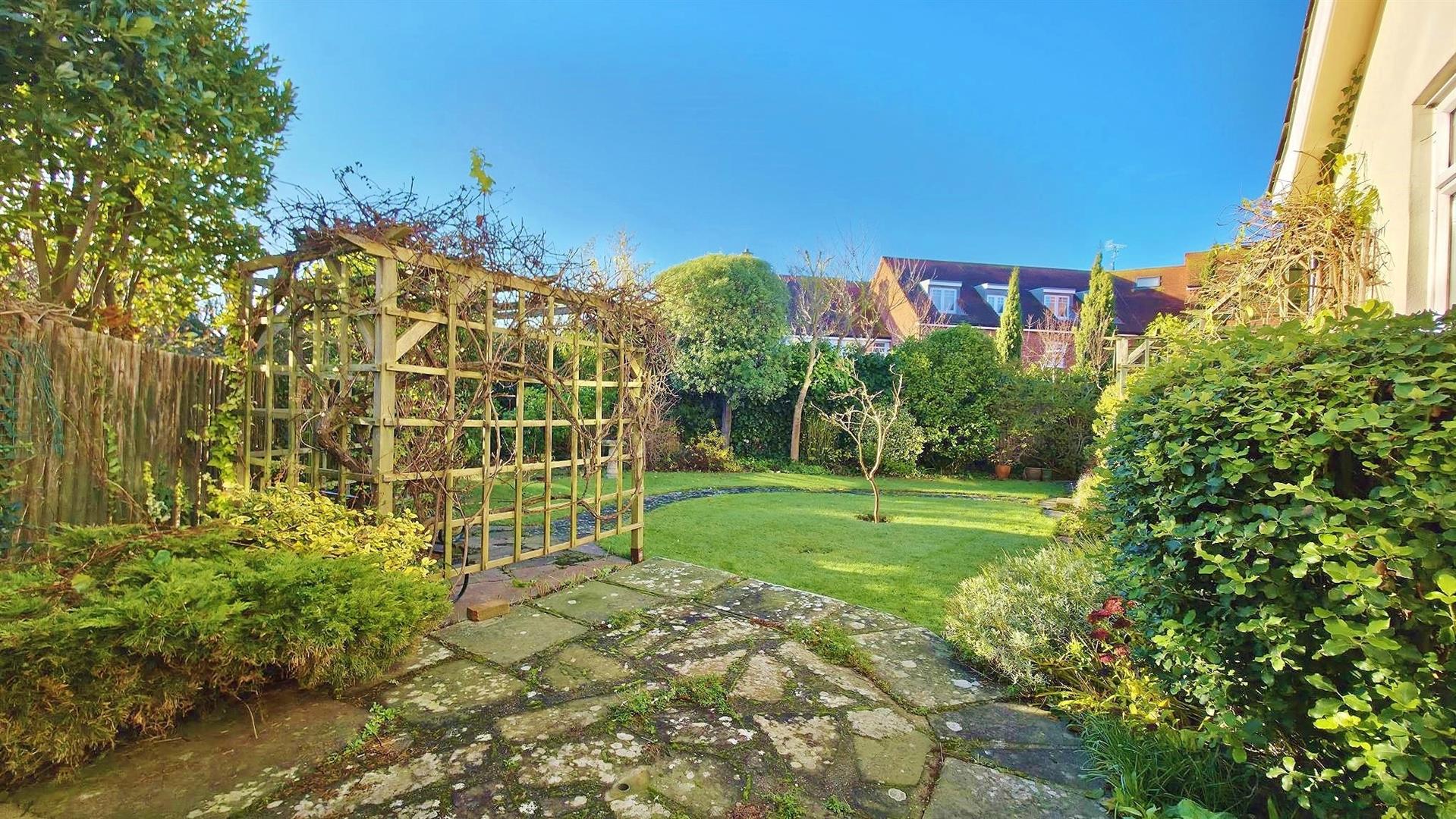 Part paved area. Remainder laid to lawn. Borders stocked with an array of flowers trees and shrubs. Featured water fountain. Further additional private garden laid to shingle with seating area and wooden storage shed to remain. Access to front via side gate. Outside socket. Enclosed by panelled fencing.