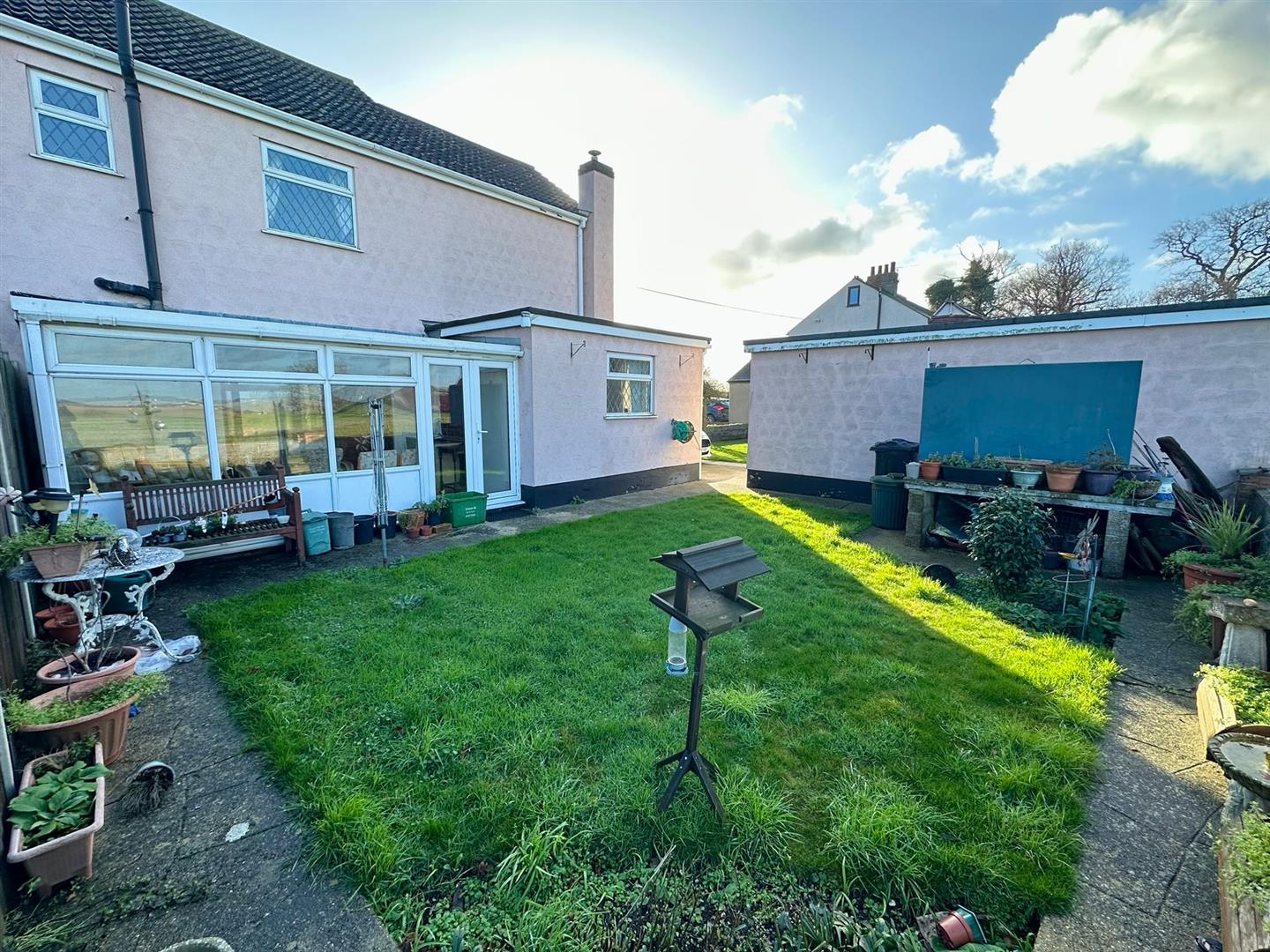 Patio paved area with the remainder being laid to lawn. Enclosed by panelled fencing and a small brick built wall. Full panoramic field views. Side pedestrian access leading to the front.