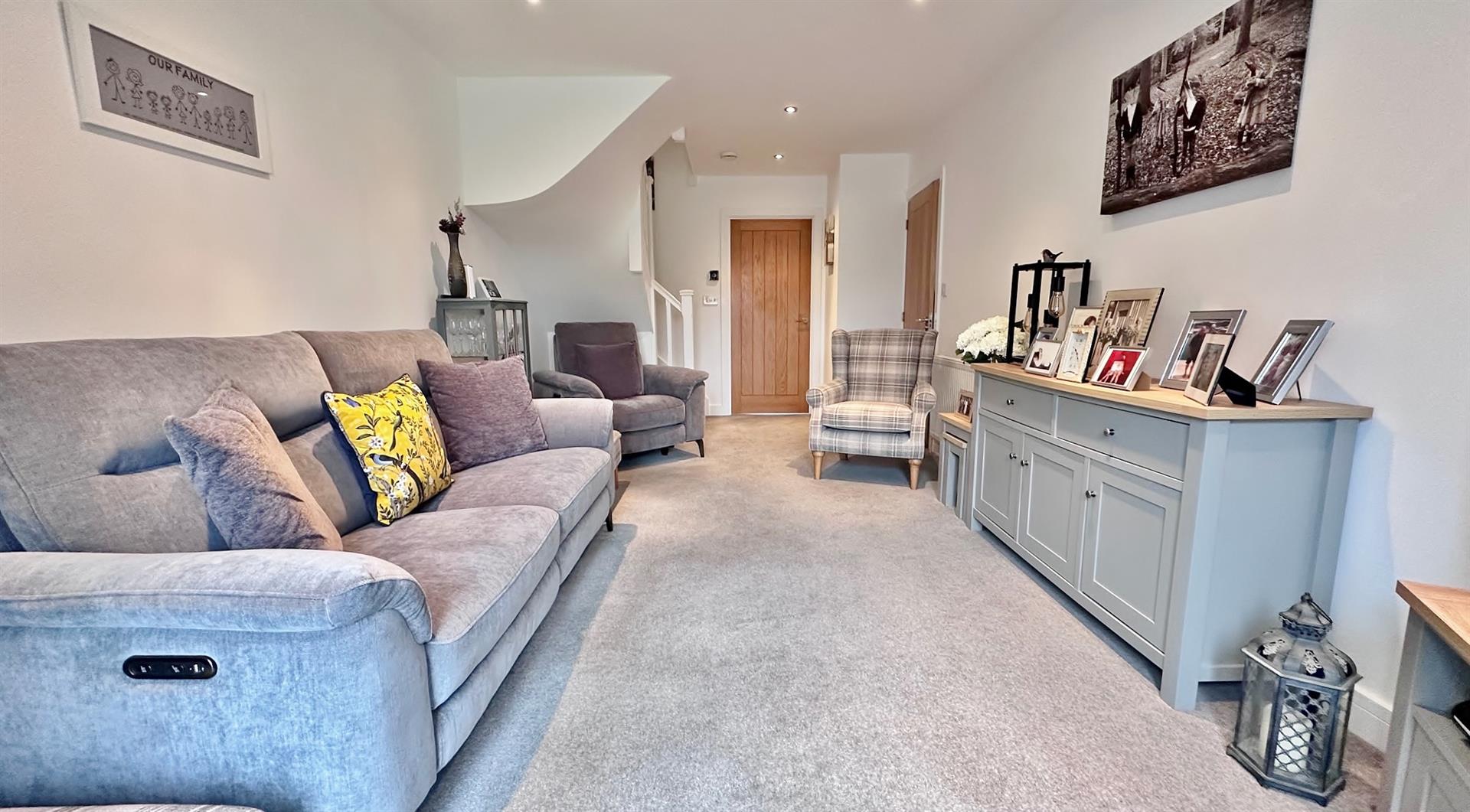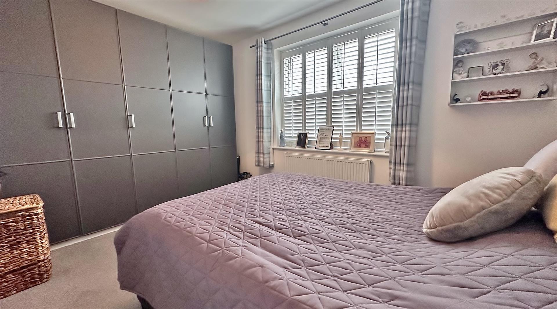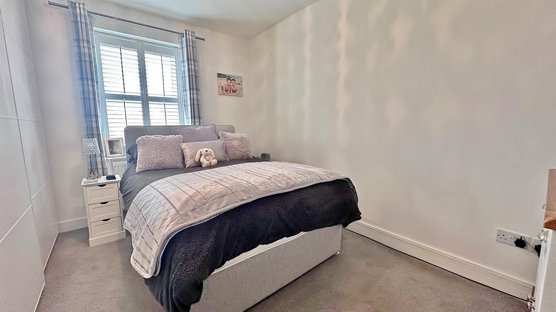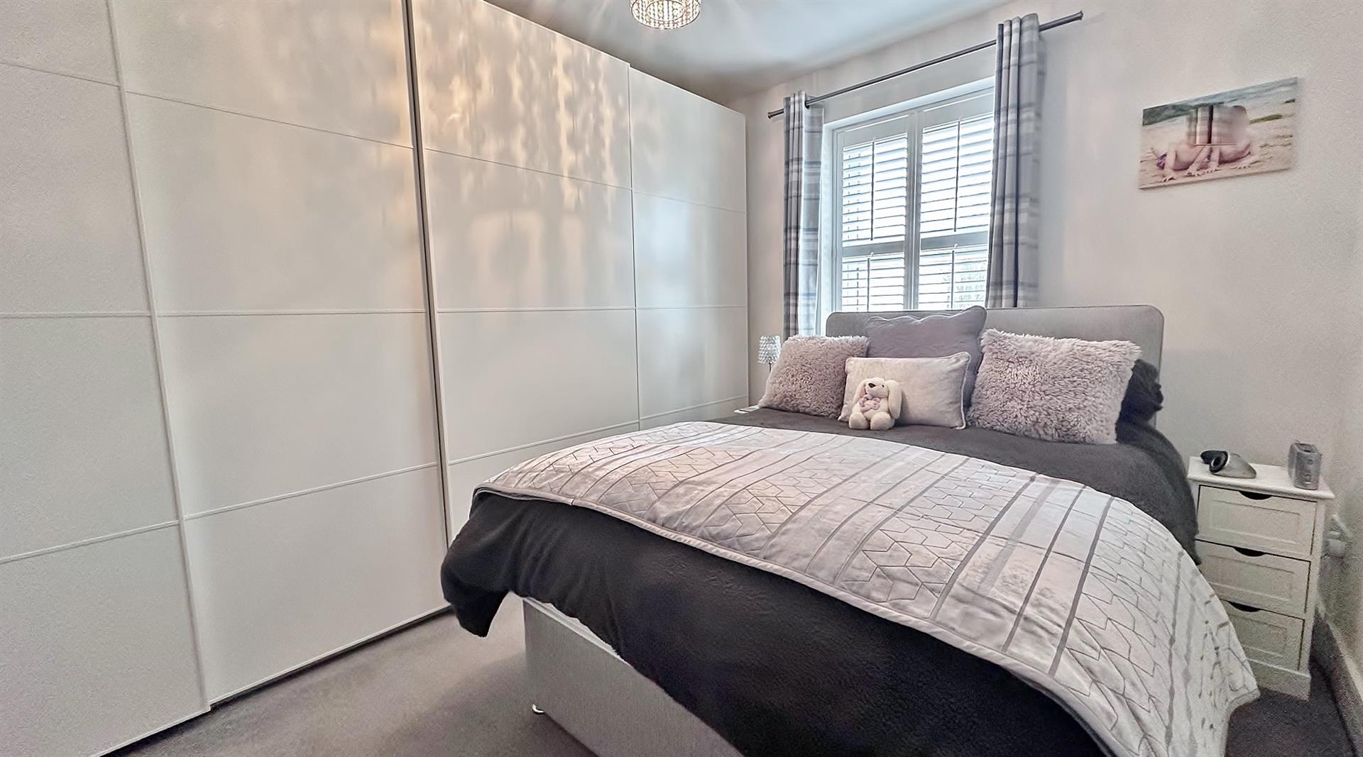 Low maintenance rear garden being laid to artificial lawn. Enclosed by panelled fencing. Patio area. Shrub borders. Timber storage shed. Access to front via side gate. Further gate leading to shingled area with allocated parking space, along with visitor parking space.