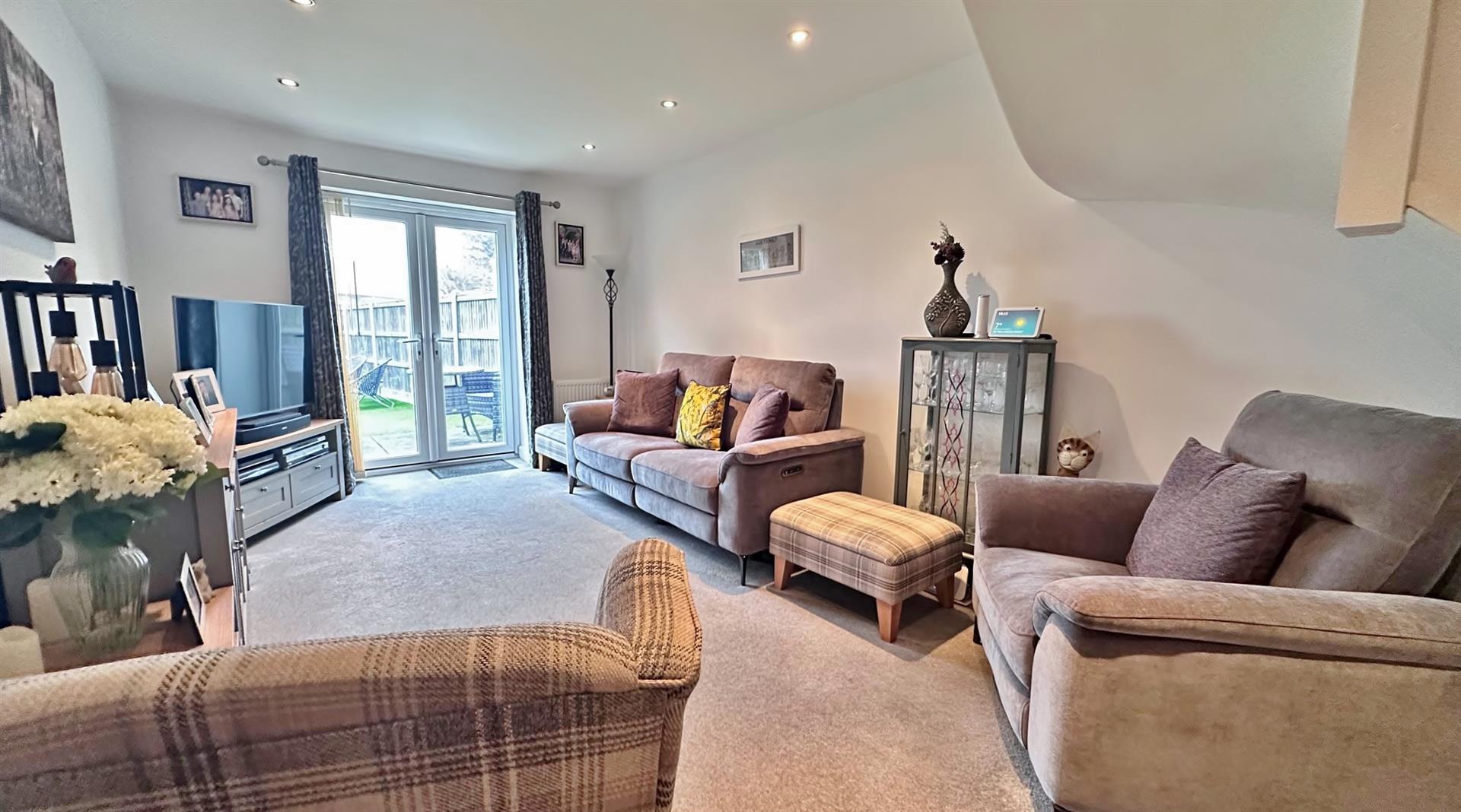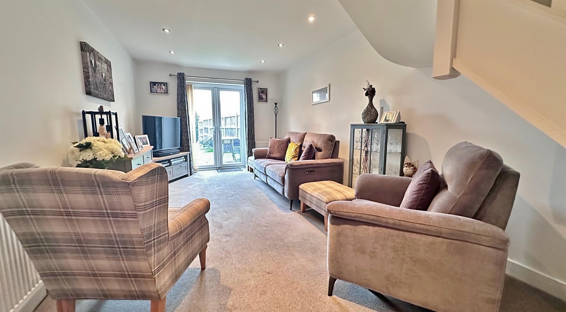 Radiator. Stair flight to first floor. Double glazed patio doors leading to garden. Door to:-