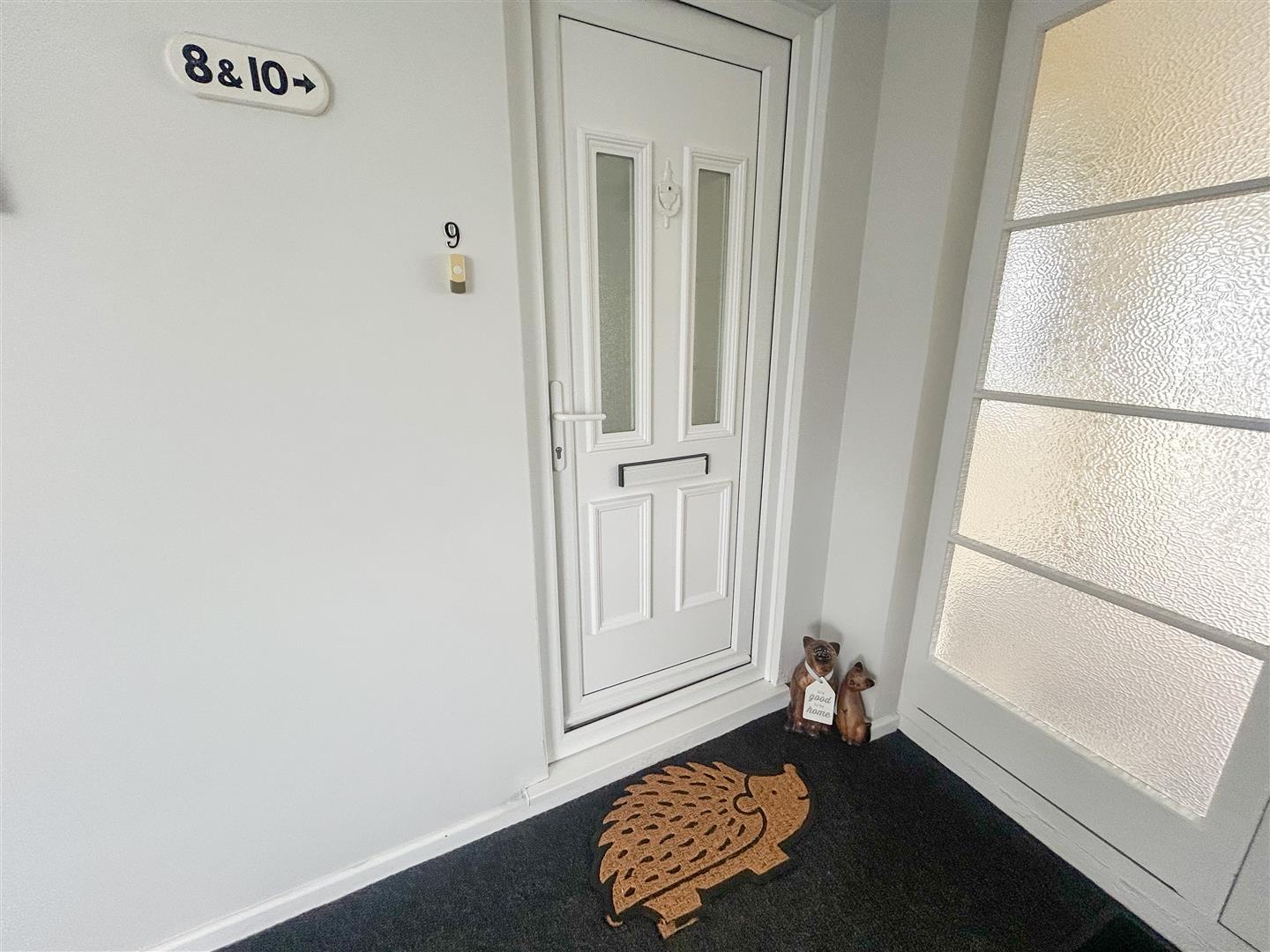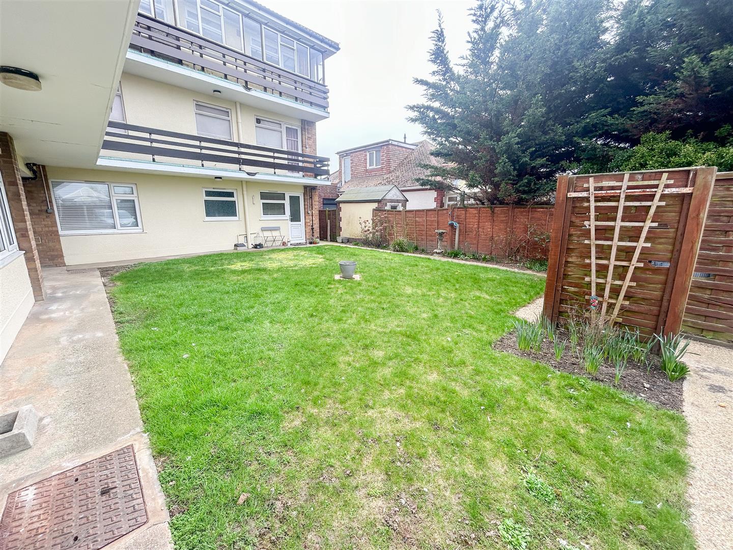 Communal gardens leading up to communal entrance door.