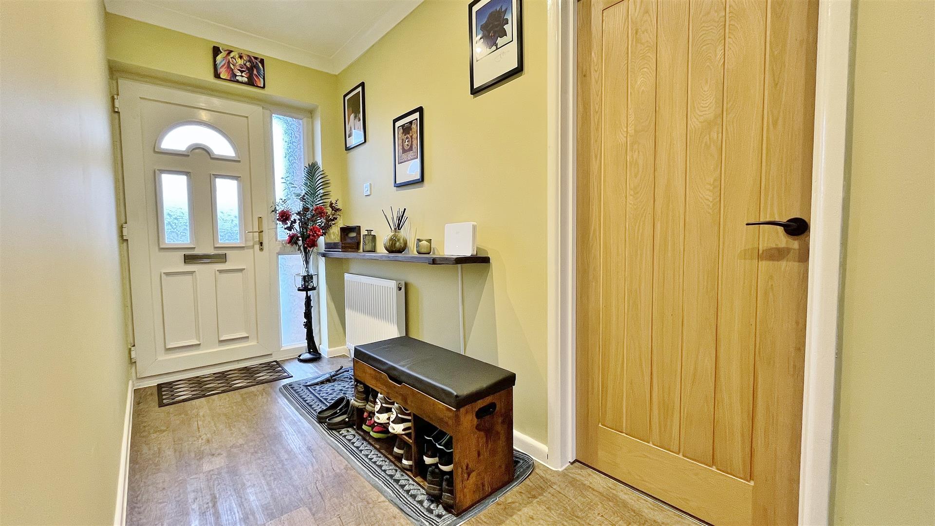Radiator. Wood effect laminate flooring. Spotlights. Loft access with pull down ladder. Doors to:-