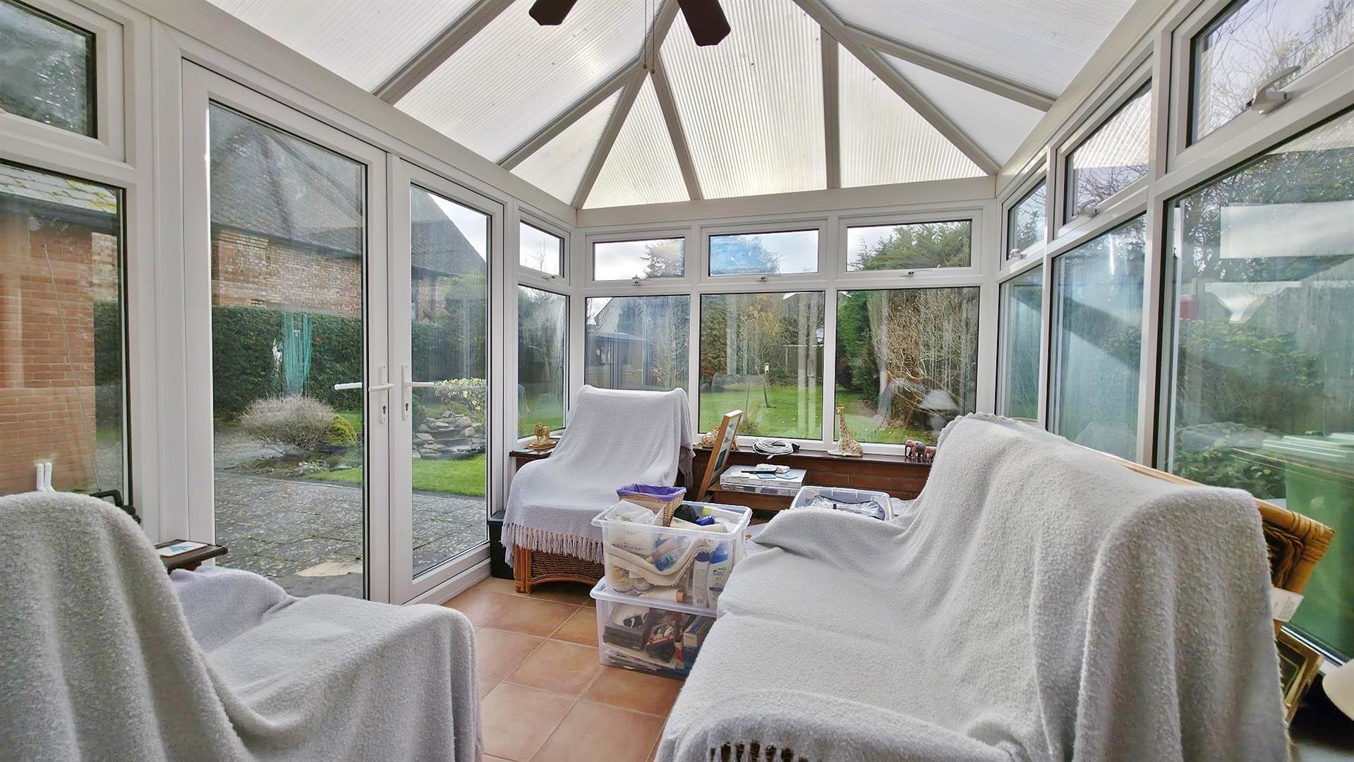 Part brick base. Poly-carbonated pitched roof. Tiled flooring. Sealed unit double glazed windows to side and rear aspect. Sealed unit double glazed 'French' style doors giving access to rear.