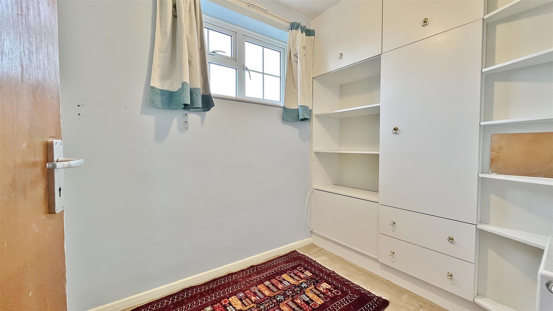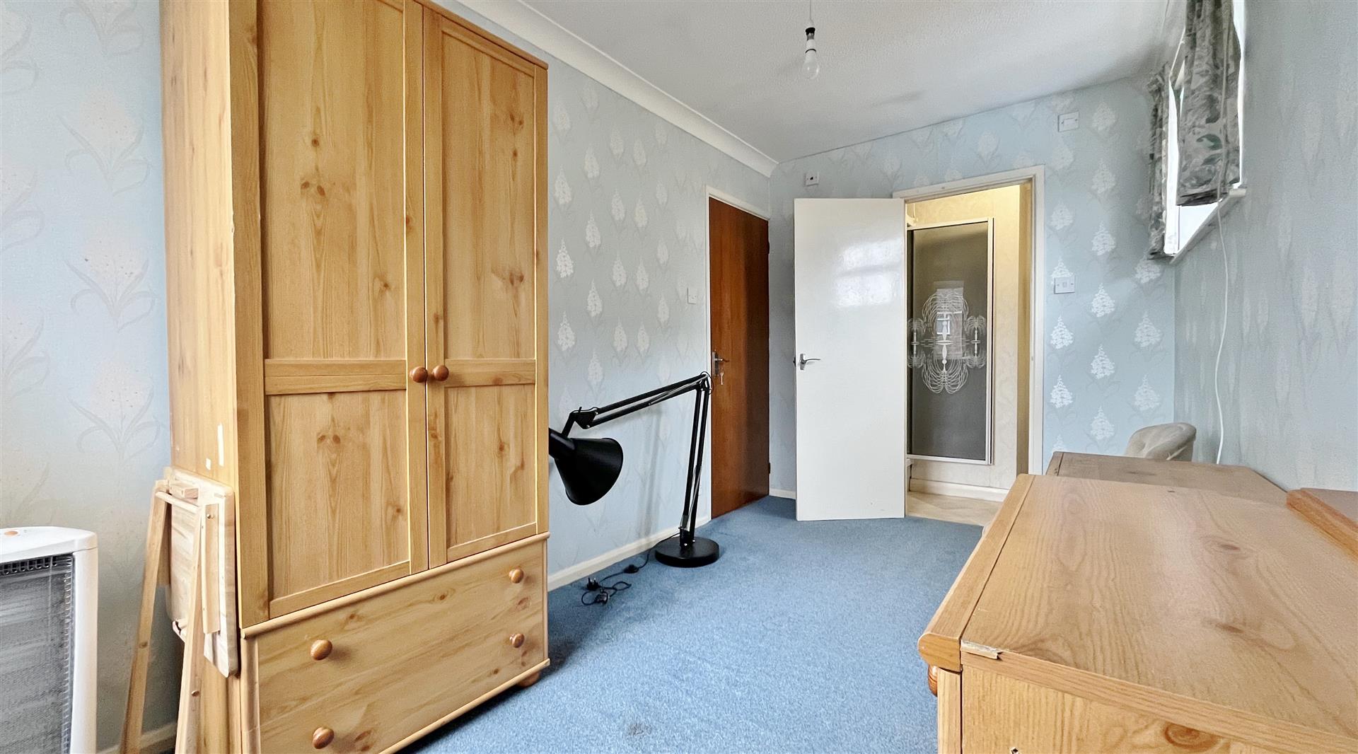 Fitted wardrobes. Radiator. Sealed unit double glazed window to front.
