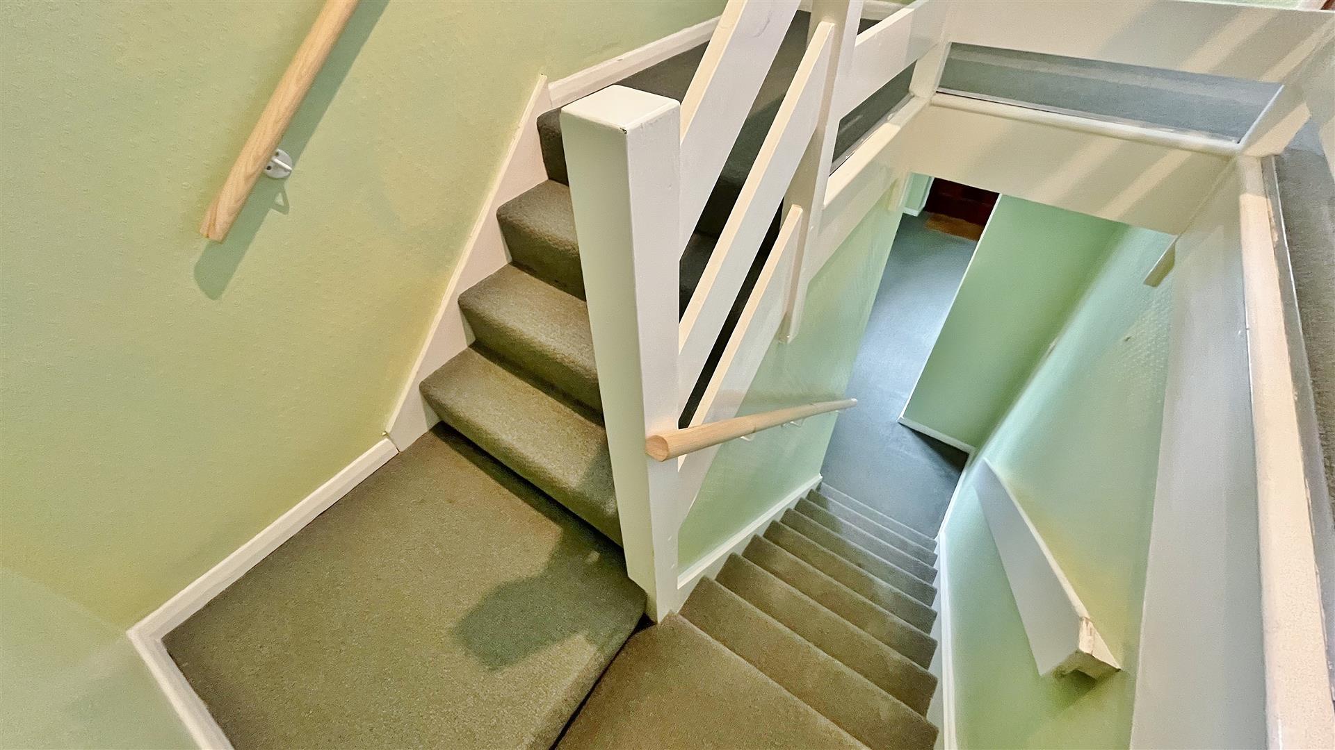 Radiator. Sealed unit double glazed window to side. Stair flight to first floor. Door to:-