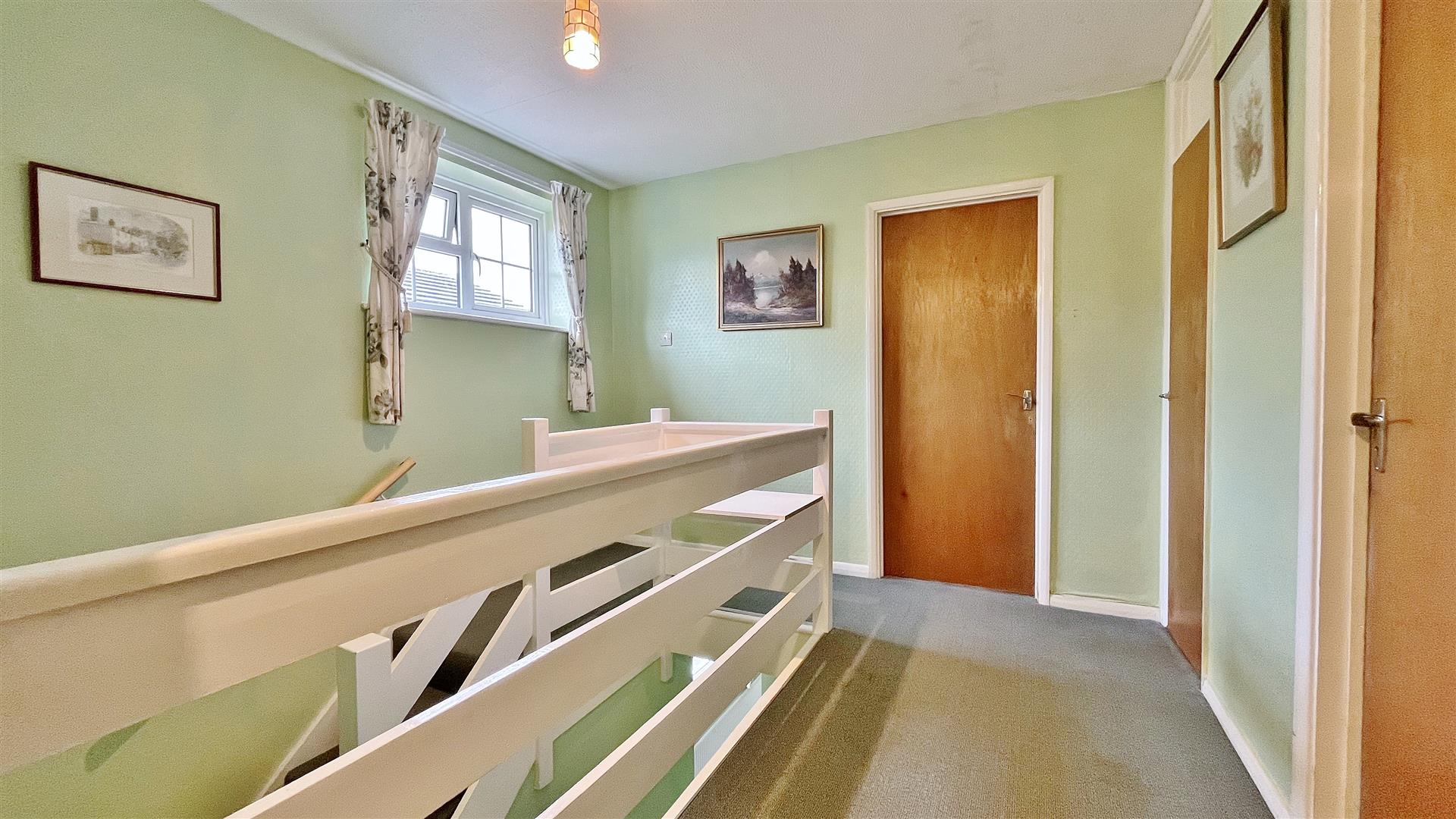 Built in airing cupboard housing hot water cylinder. Loft access. Sealed unit double glazed window to side. Doors to:-
