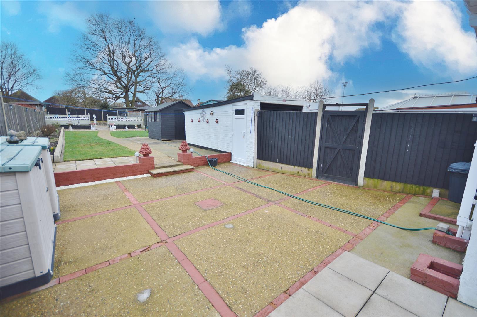 Mainly being patio paved with the remainder being laid to lawn. Enclosed by panelled fencing. One wooden storage shed. Side pedestrian access leading to the outside front.