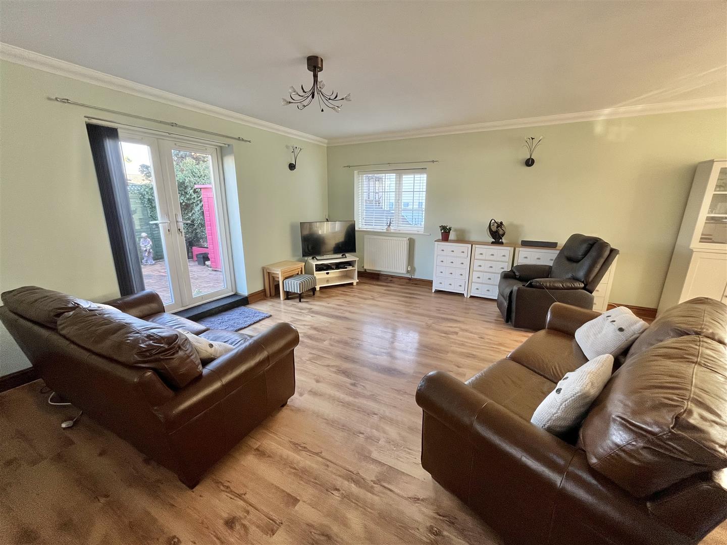 Radiator. Double glazed window to side. Double glazed double door to garden. Stair flight to first floor with stair lift.