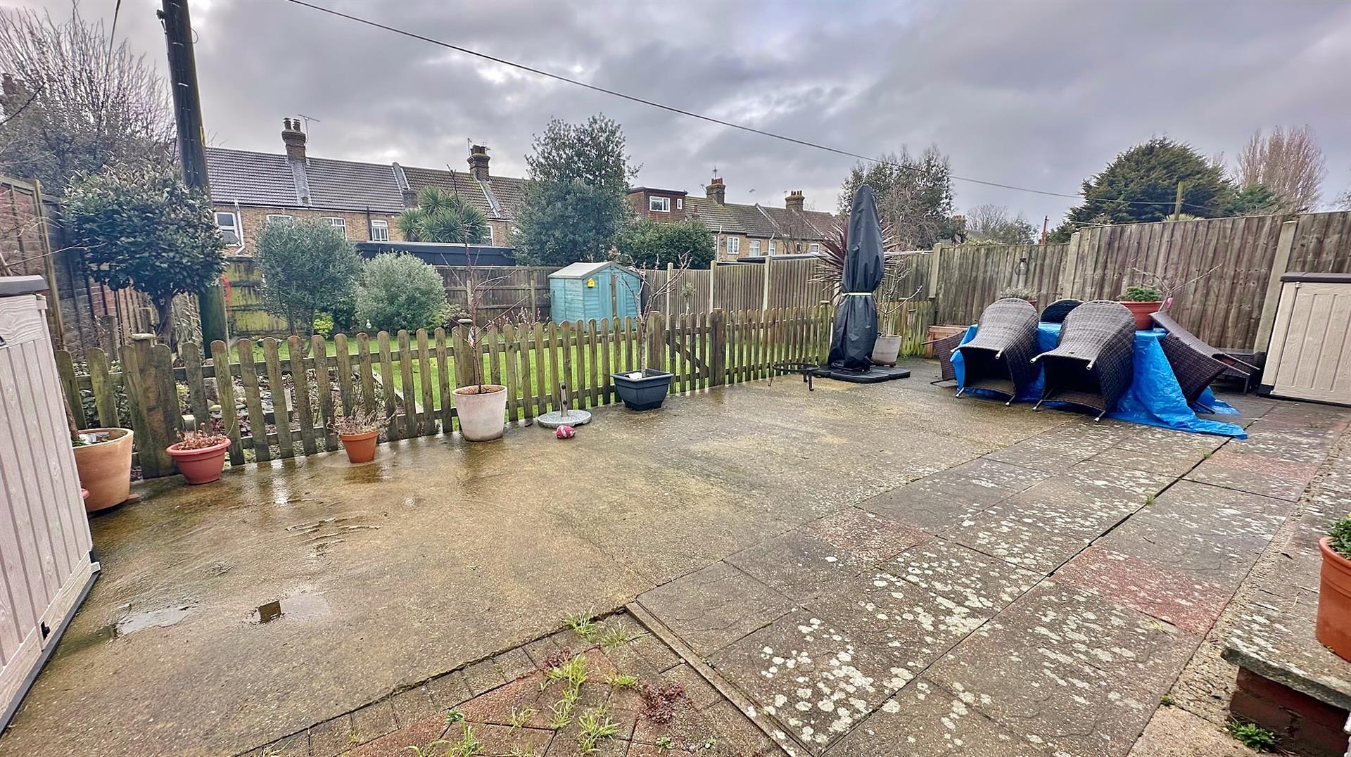 Westerly facing garden measuring approx. 50'. Commencing with paved patio and hardstanding area. Remainder being laid to lawn and enclosed by panel fencing. Side gate giving access to front.