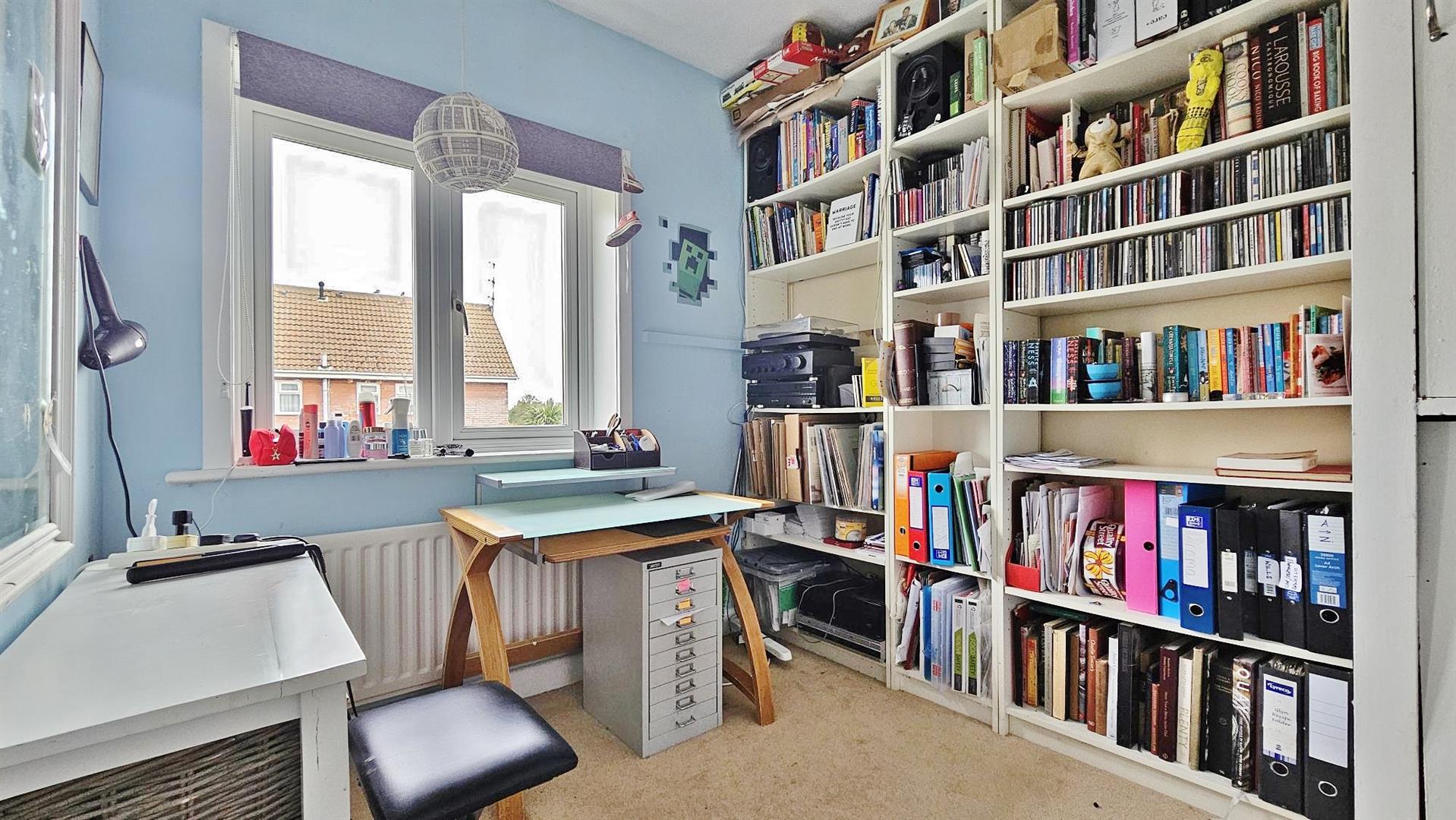 Built in airing cupboard. Fitted bookshelf. Radiator. Sealed unit double glazed window to rear.