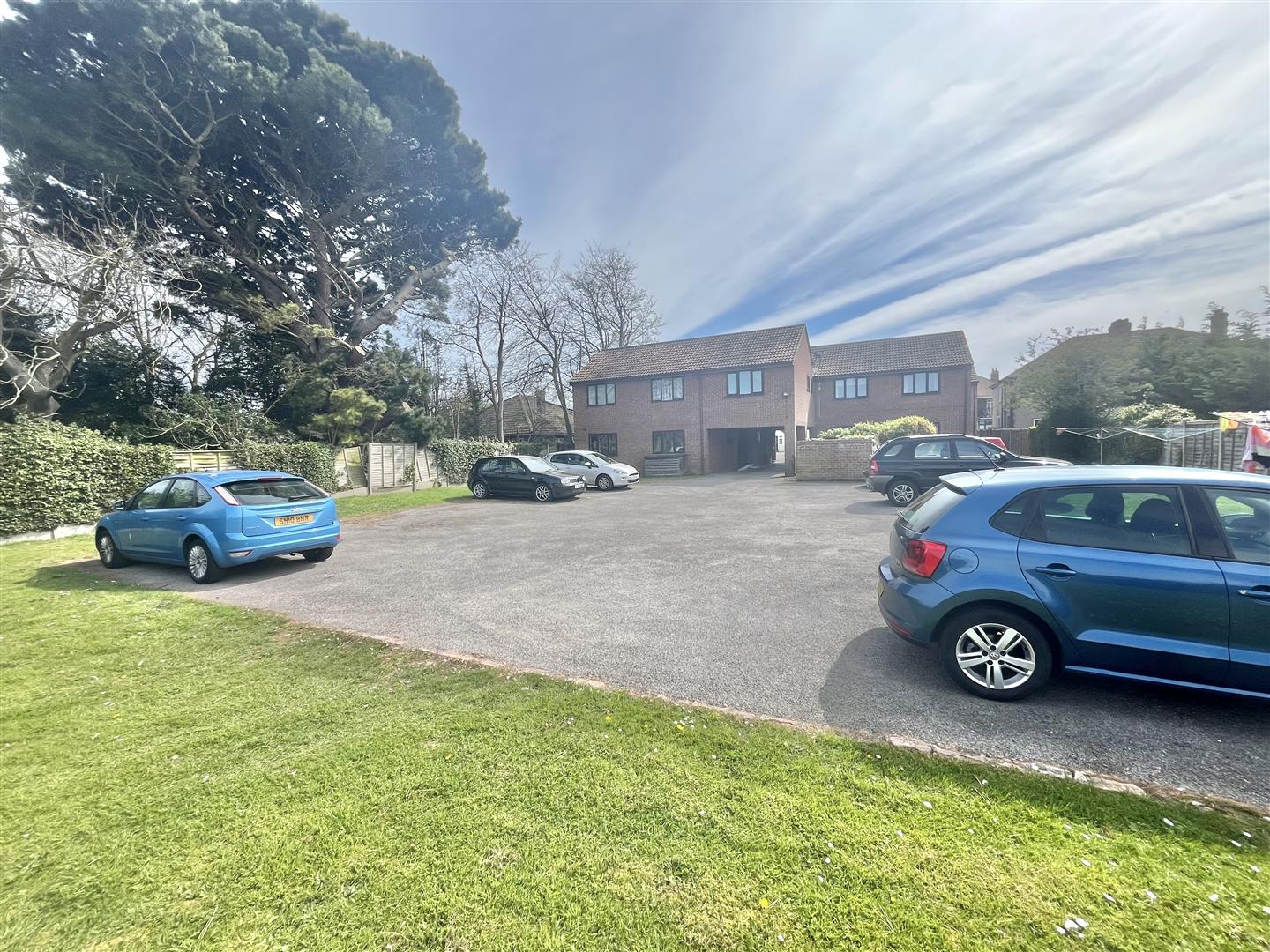 Paved patio area providing off street parking for residents of the flat. Two spaces per flat. Remainder being laid to lawn providing communal garden area for residents.