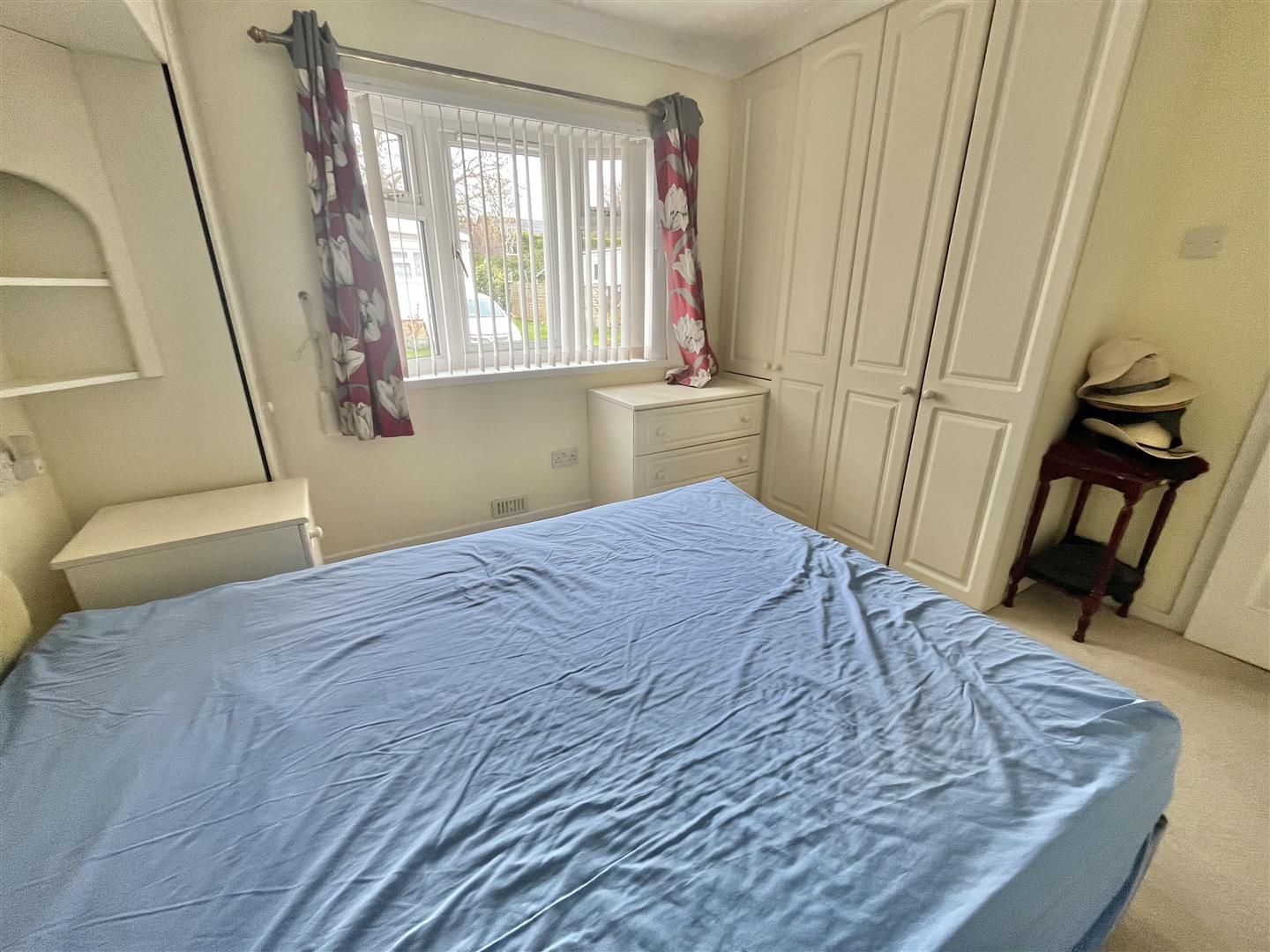 Built in storage cupboards. Radiator. Double glazed bay window to front.