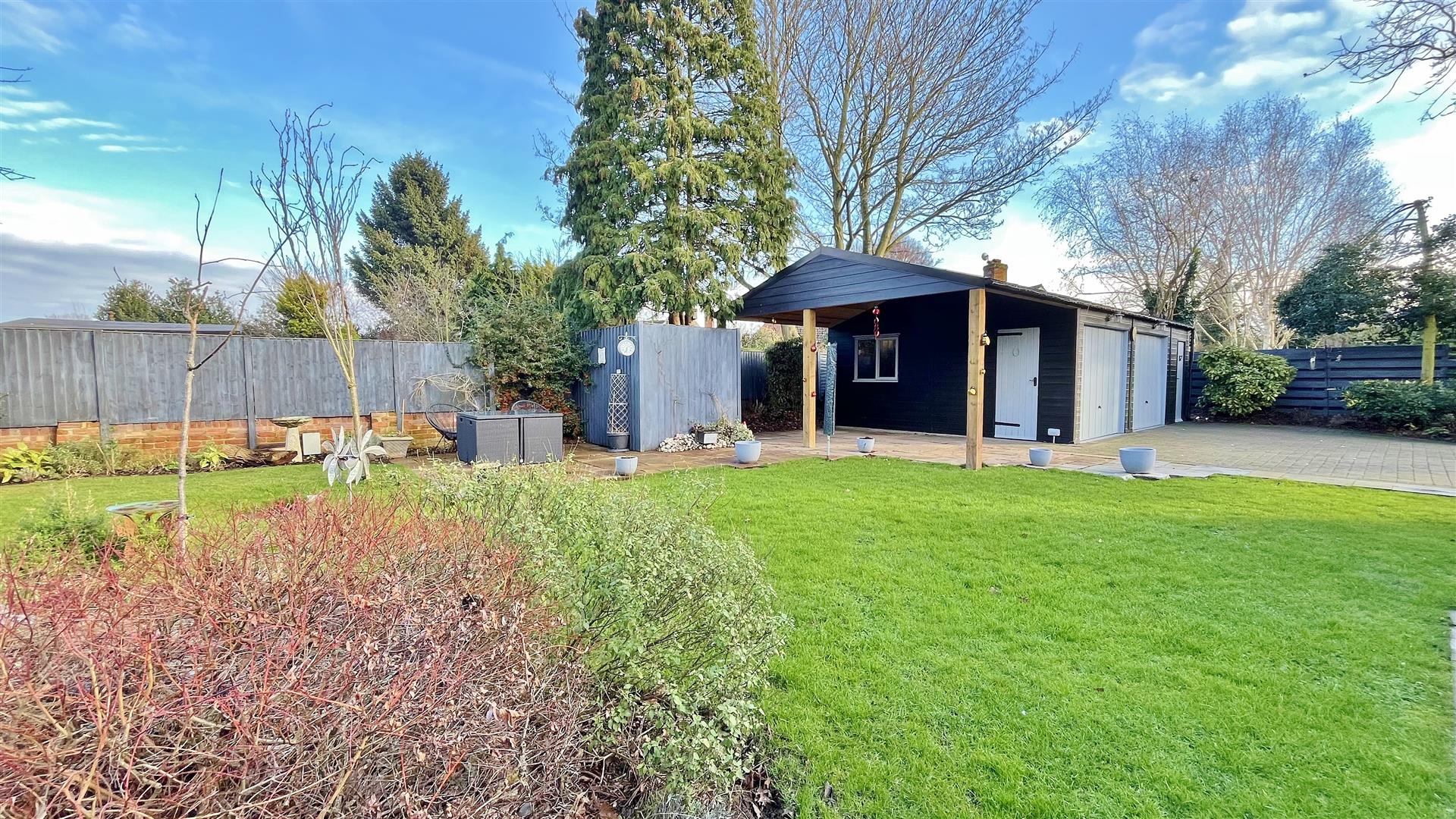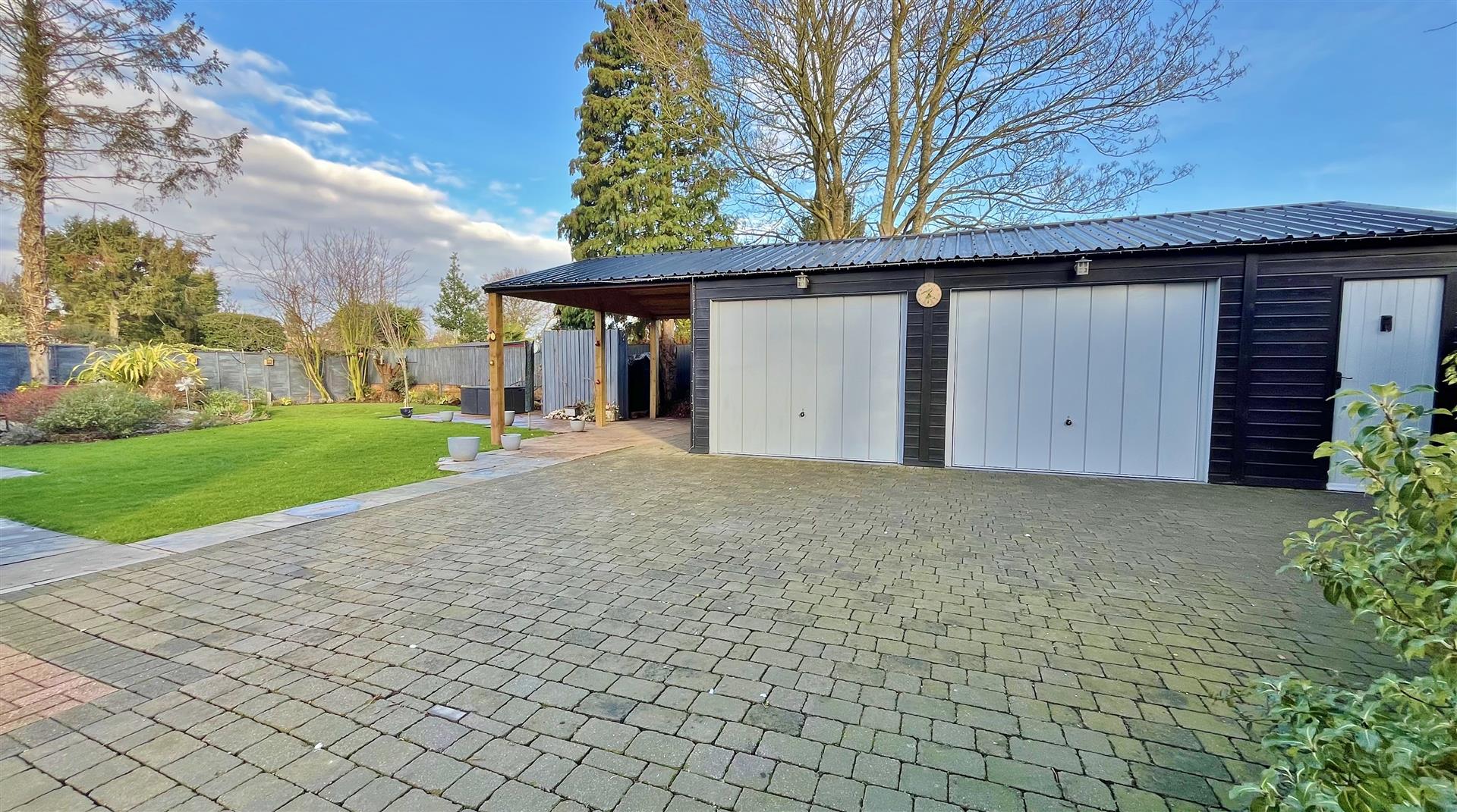 Paved and gated area providing ample off street parking for several vehicles leading to double garage with up and over doors. Manicured landscaped with array of shrubs, bushes, trees and sec. Wooden storage shed. Secluded seating area. Summer house. Further work shop. Part laid to lawn. Further seating area. Sunken pond with rockery and waterfall. Enclosed by panelled fencing.