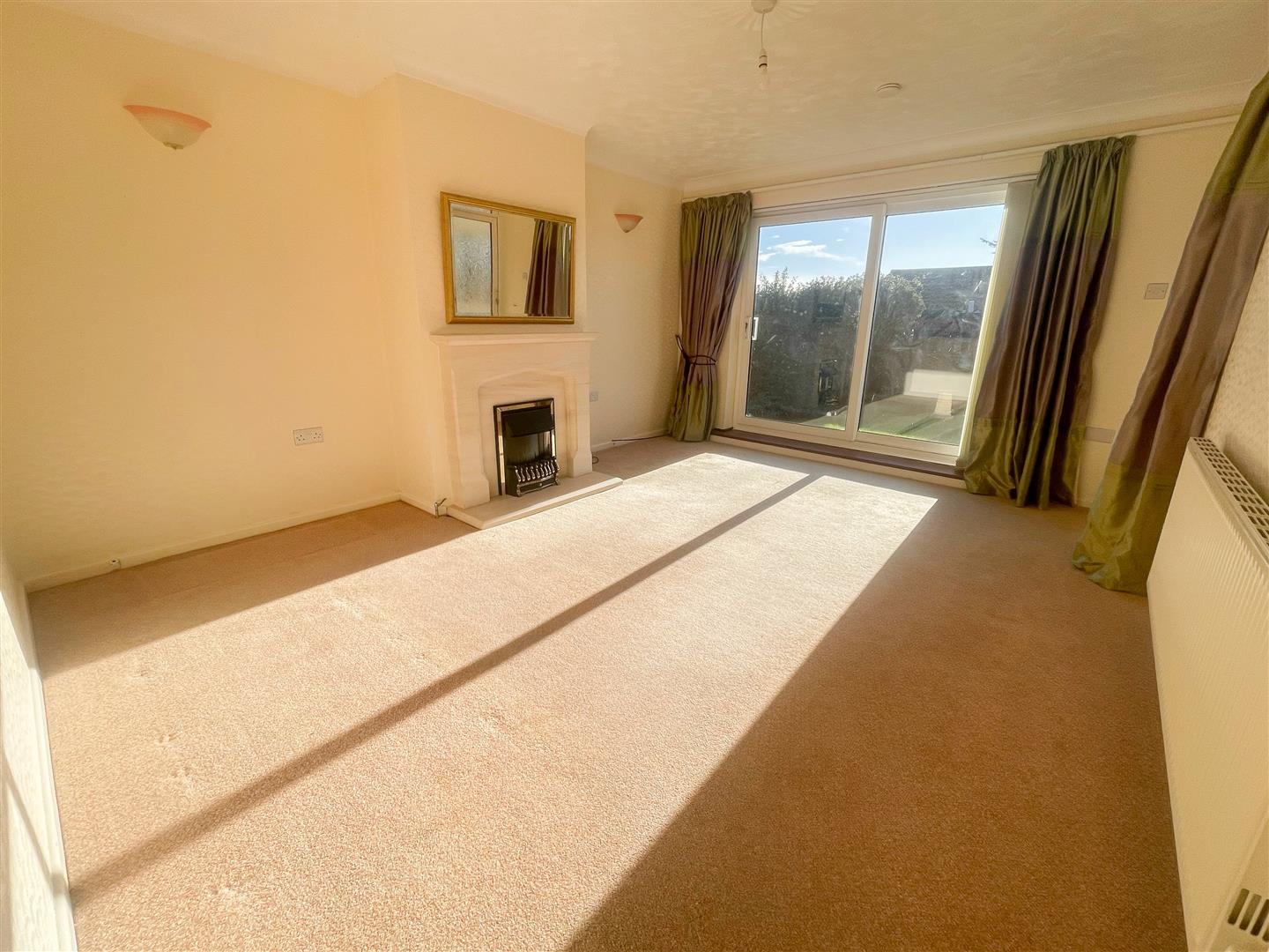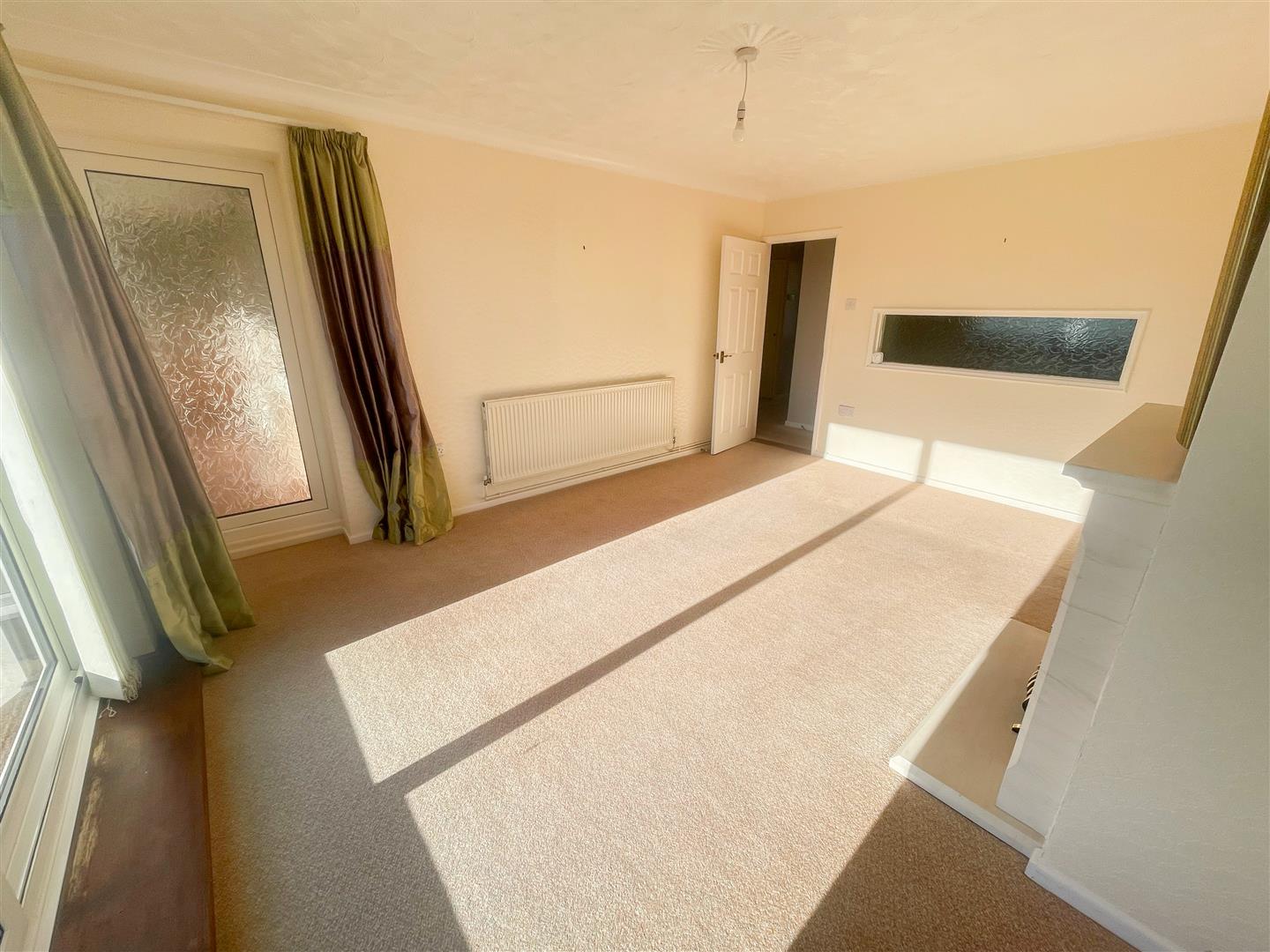 Radiator. Feature fireplace with inset electric fire. Double glazed sliding double doors to rear. Double glazed door to: