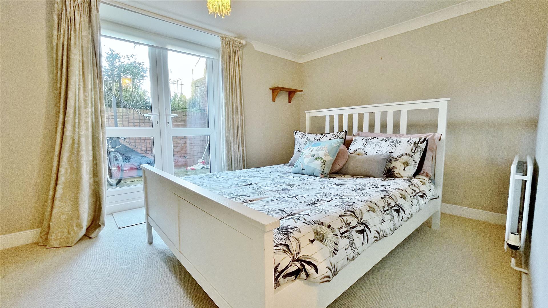 Radiator. Sealed unit double glazed patio doors to front.